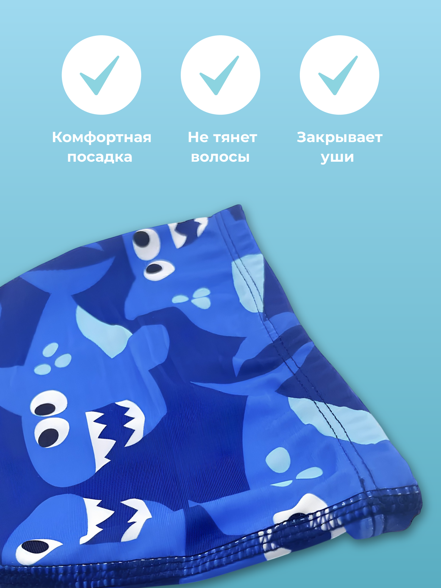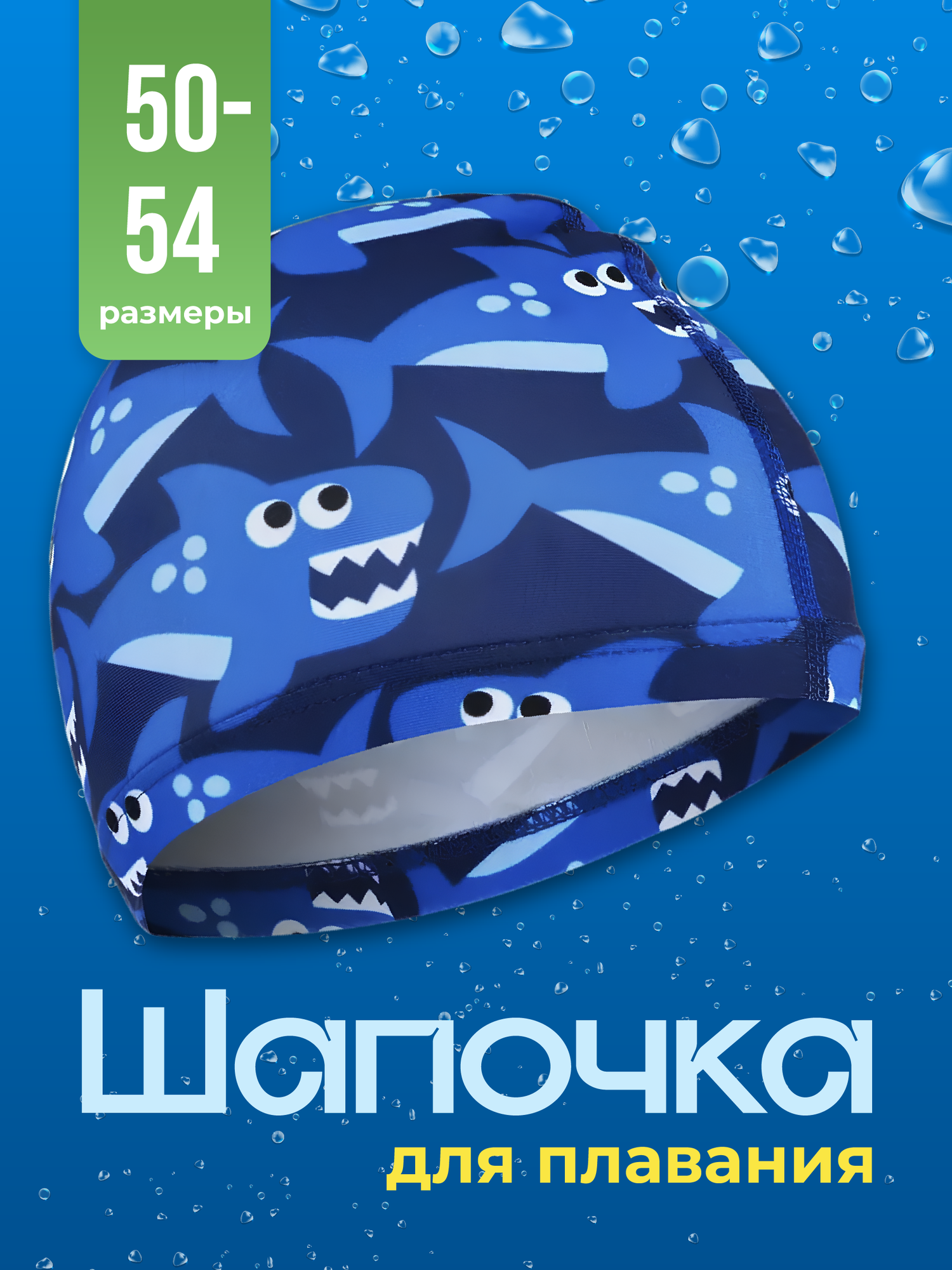 Шапочка для плавания тканевая детская Shark Fit, синяя, размер 50-54 интересное: