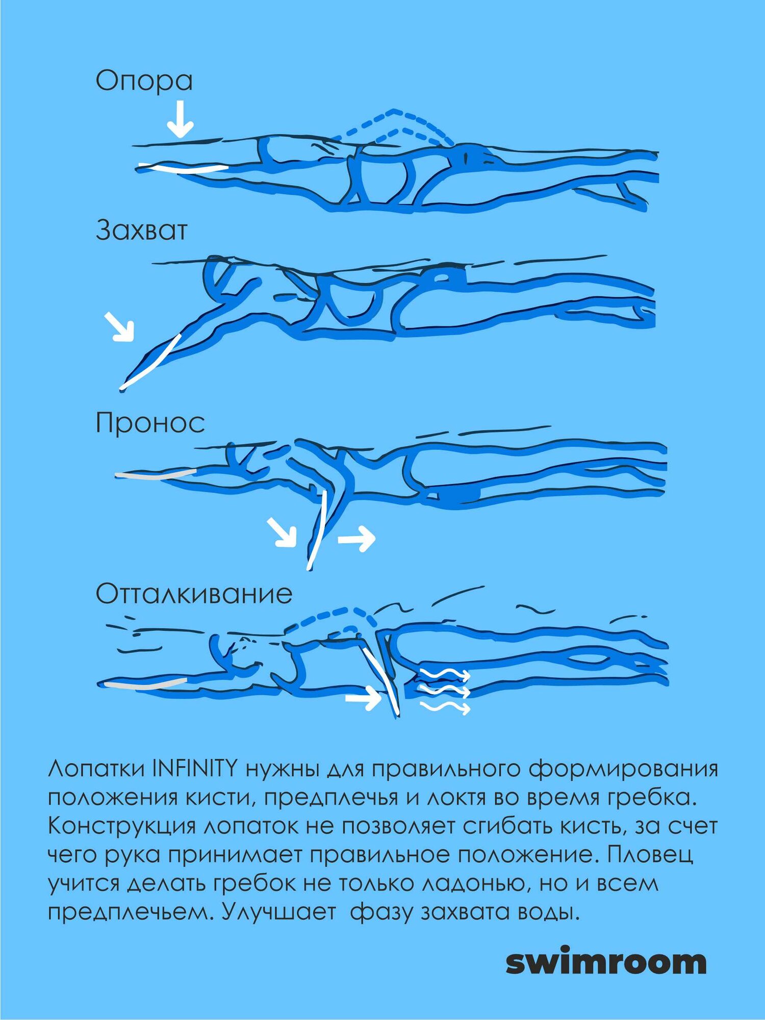 Лопатки для плавания восьмерка SwimRoom "Infinity L", цвет синий
