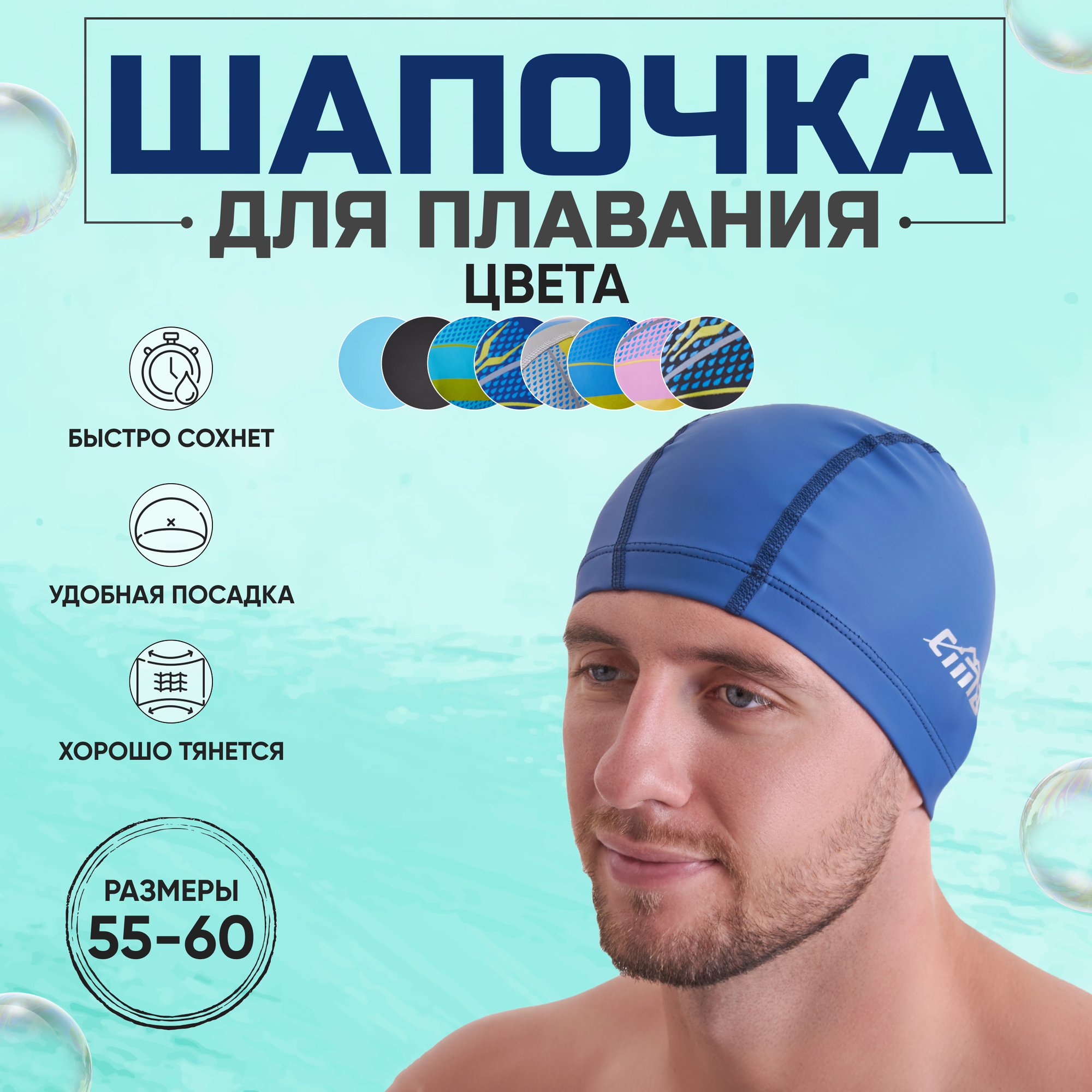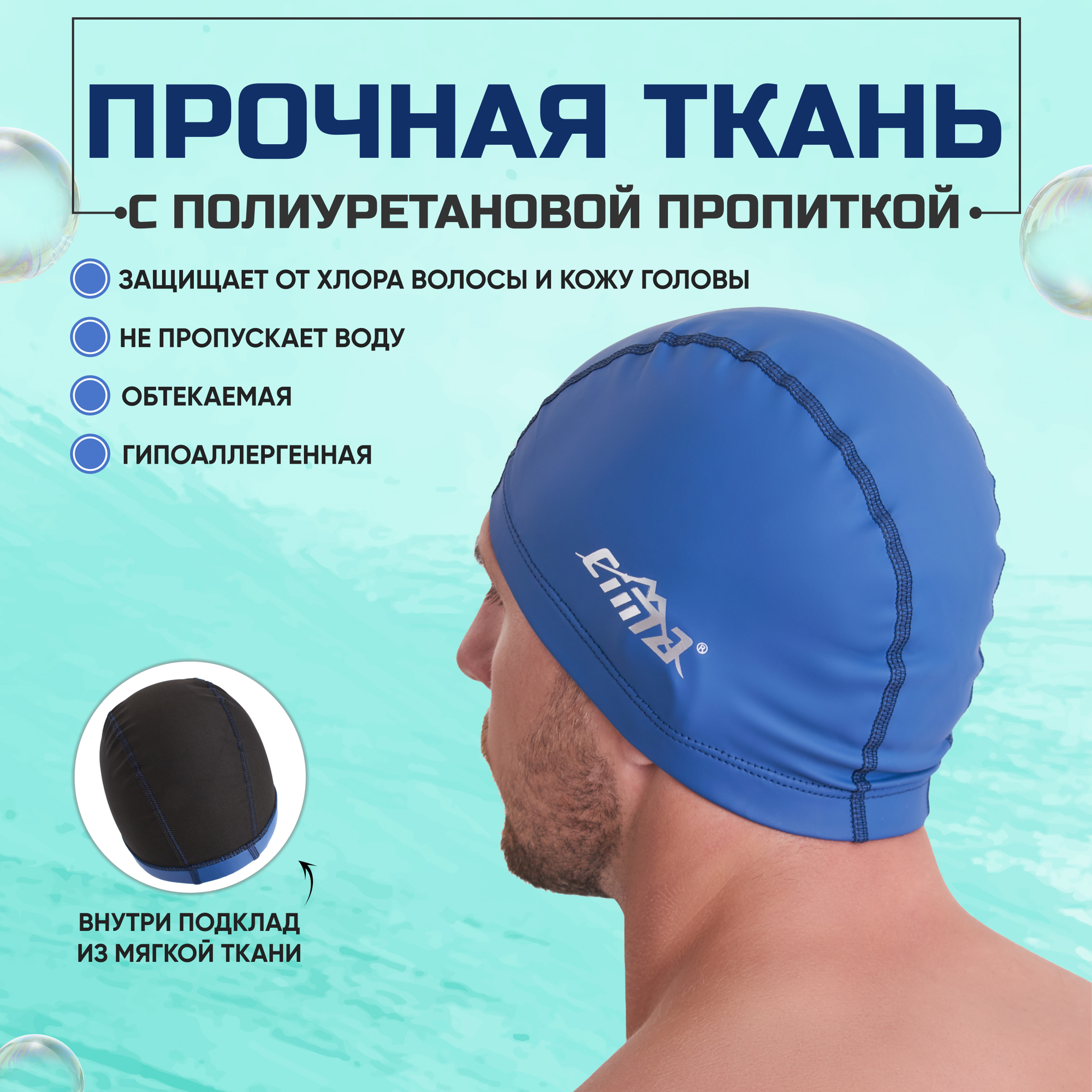 Шапочка для плавания взрослая CIMA-PL, тканевая, комбинированная, обхват 54-60 см интересное: