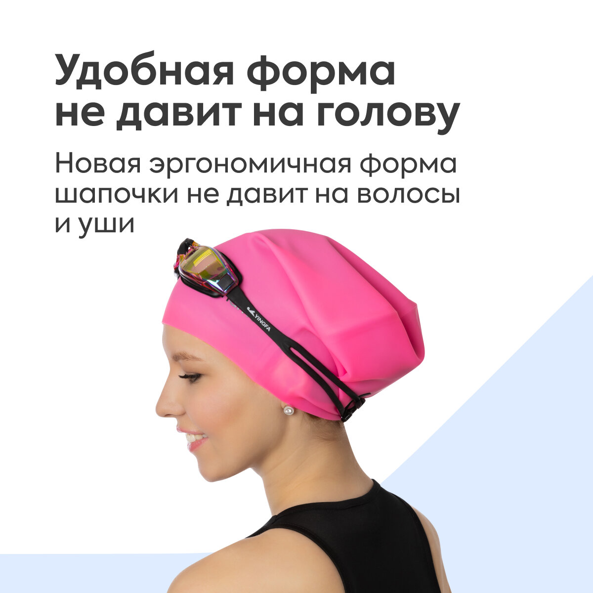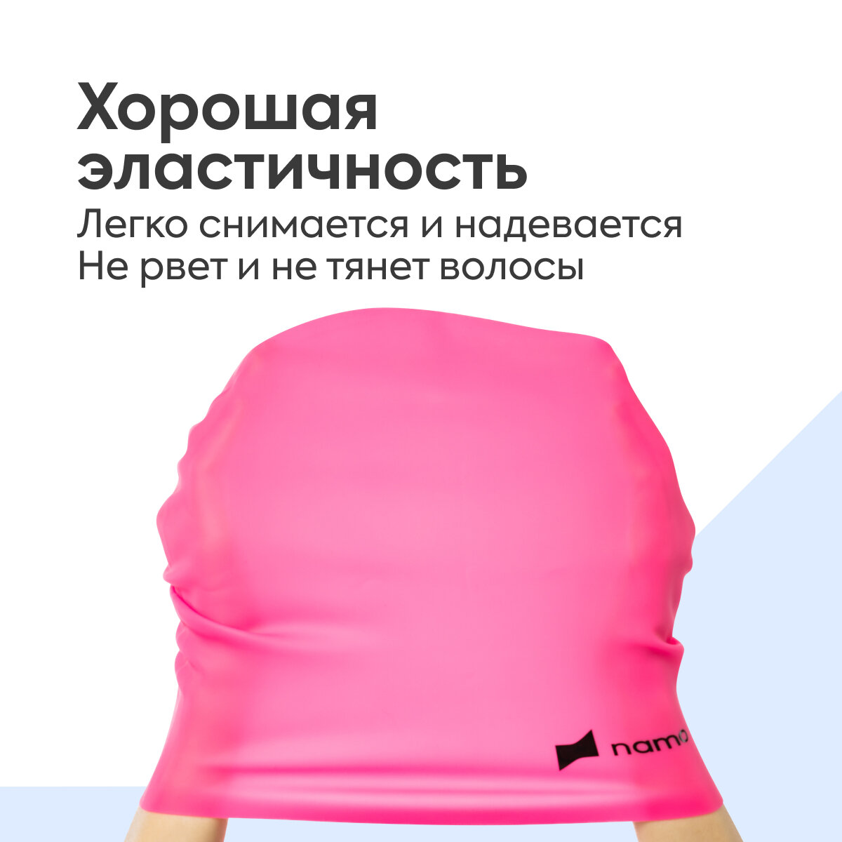 Шапочка для плавания Namo "Для очень длинных волос", женская, силикон, 50-56, розовая интересное: