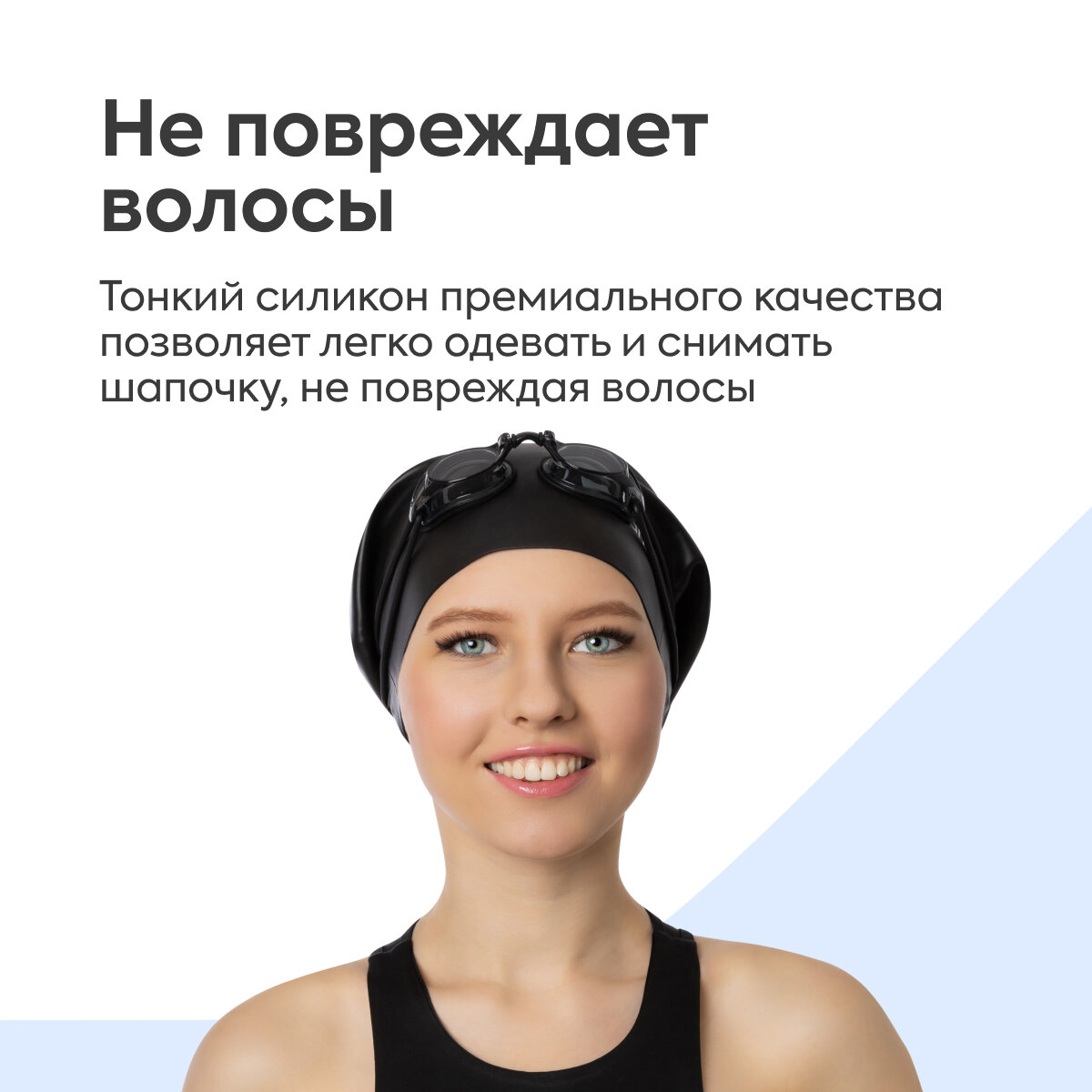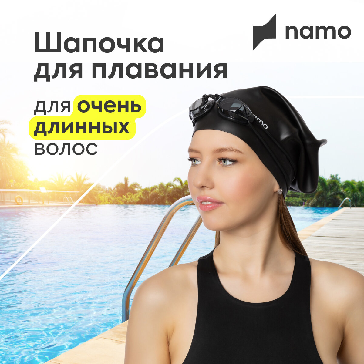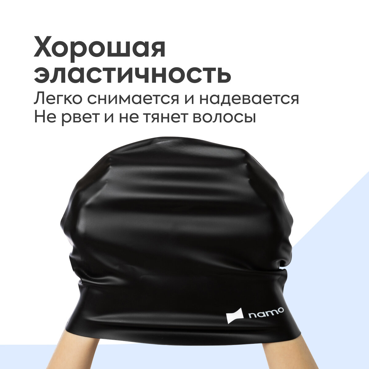 Шапочка для плавания Namo, для очень длинных волос, непромокаемая, силикон, черная интересное: