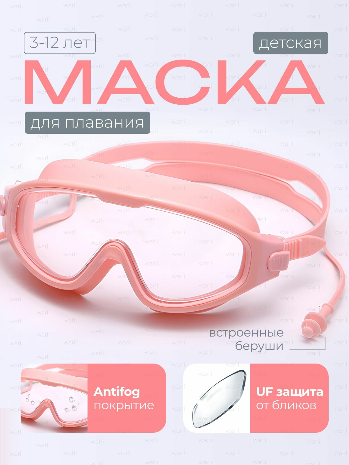 Маска для плавания, детская, встроенные беруши, 3-12 лет, темно-розовая интересное: