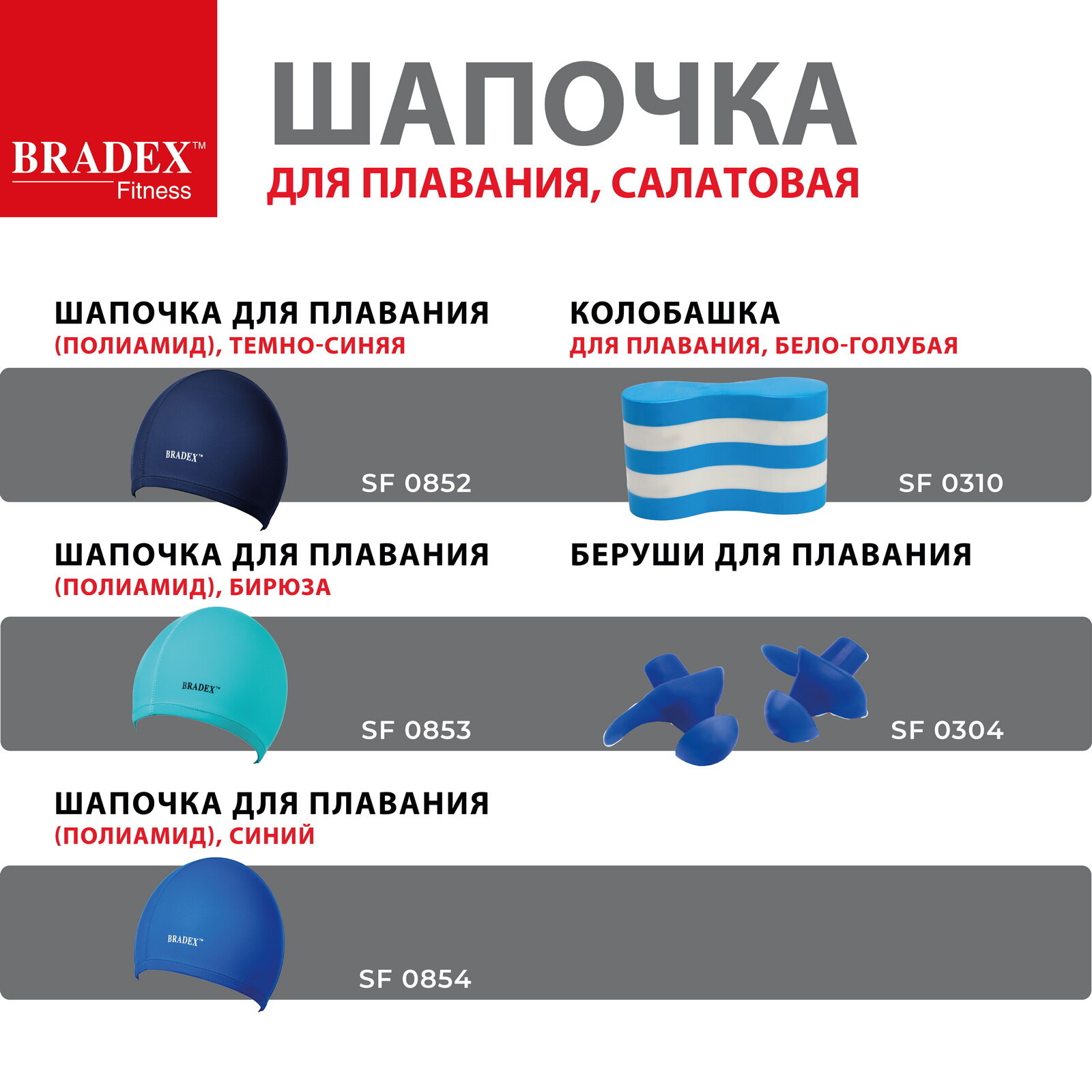 Шапочка для плавания Bradex, полиамид, для длинных волос, бирюзовая