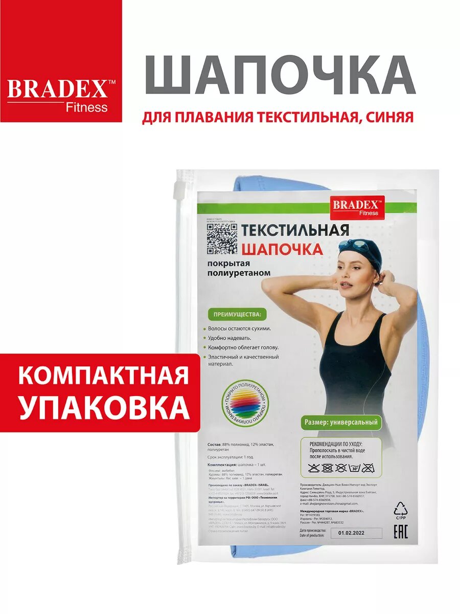 Шапочка для плавания Bradex, полиамид, для длинных волос, синяя интересное: