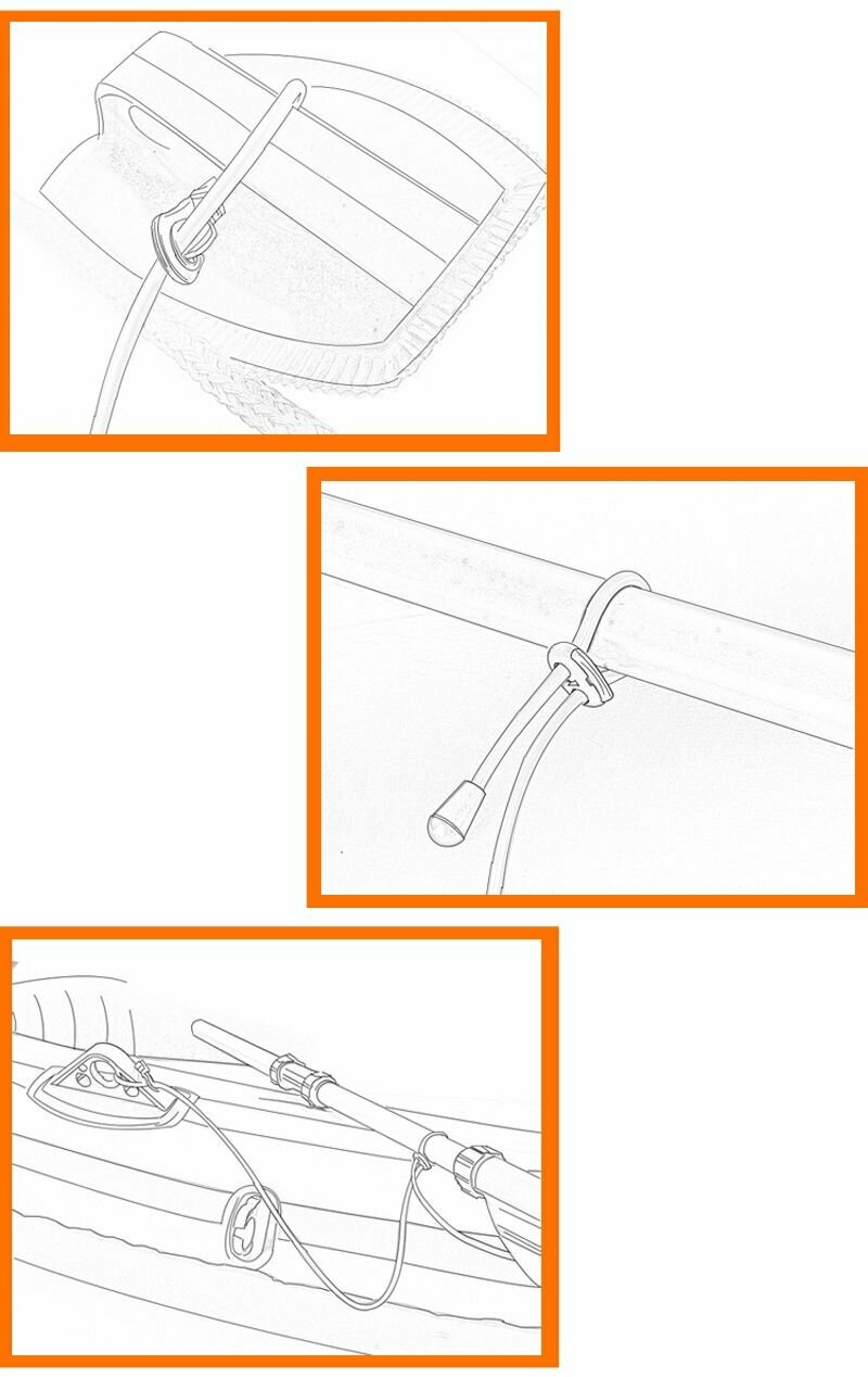 Набор 2 шт эластичная верёвка для фиксации весла SUP доски оранжевая
