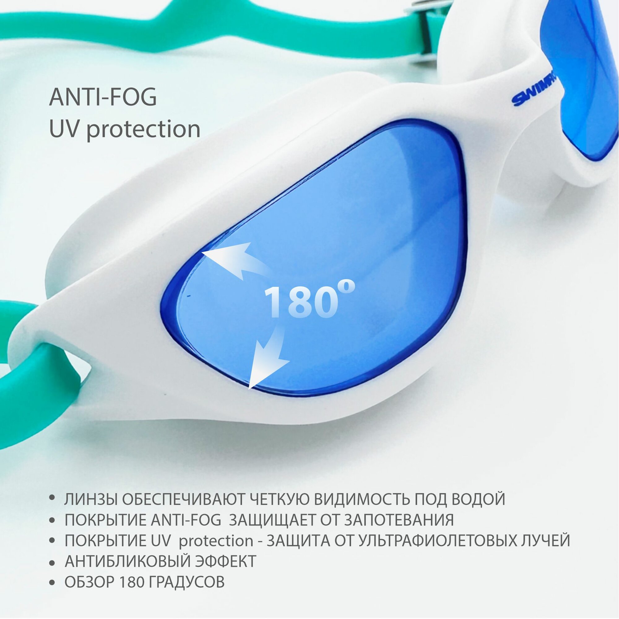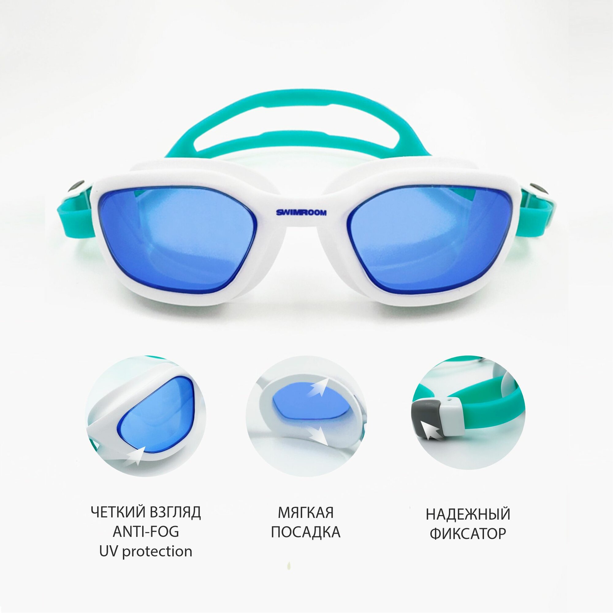 Очки для плавания / бассейна SwimRoom «Panda», цвет белый с бирюзовым интересное: