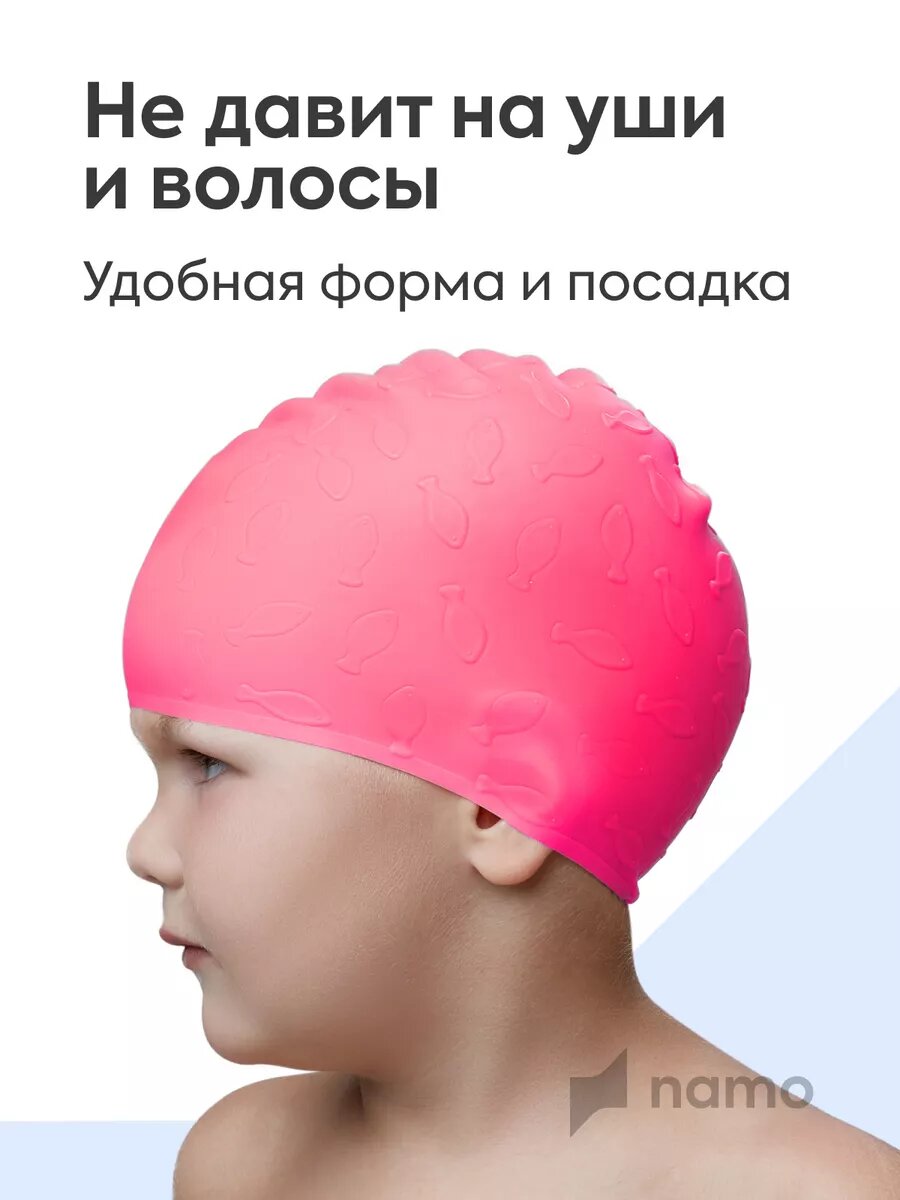 Шапочка для плавания в бассейне силиконовая 46-52 см, розовая интересное: