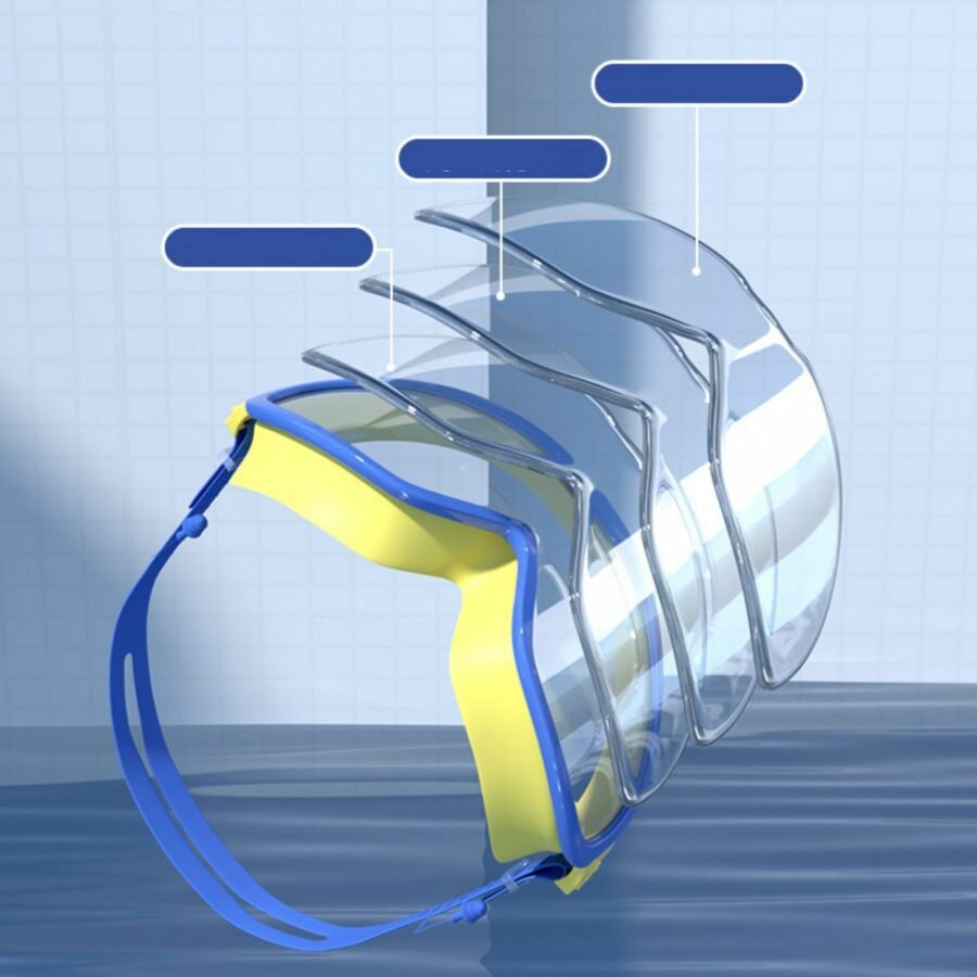 Очки-полумаска для плавания детские возраст 3-12 лет JIEHU J-8580 голубые-желтые