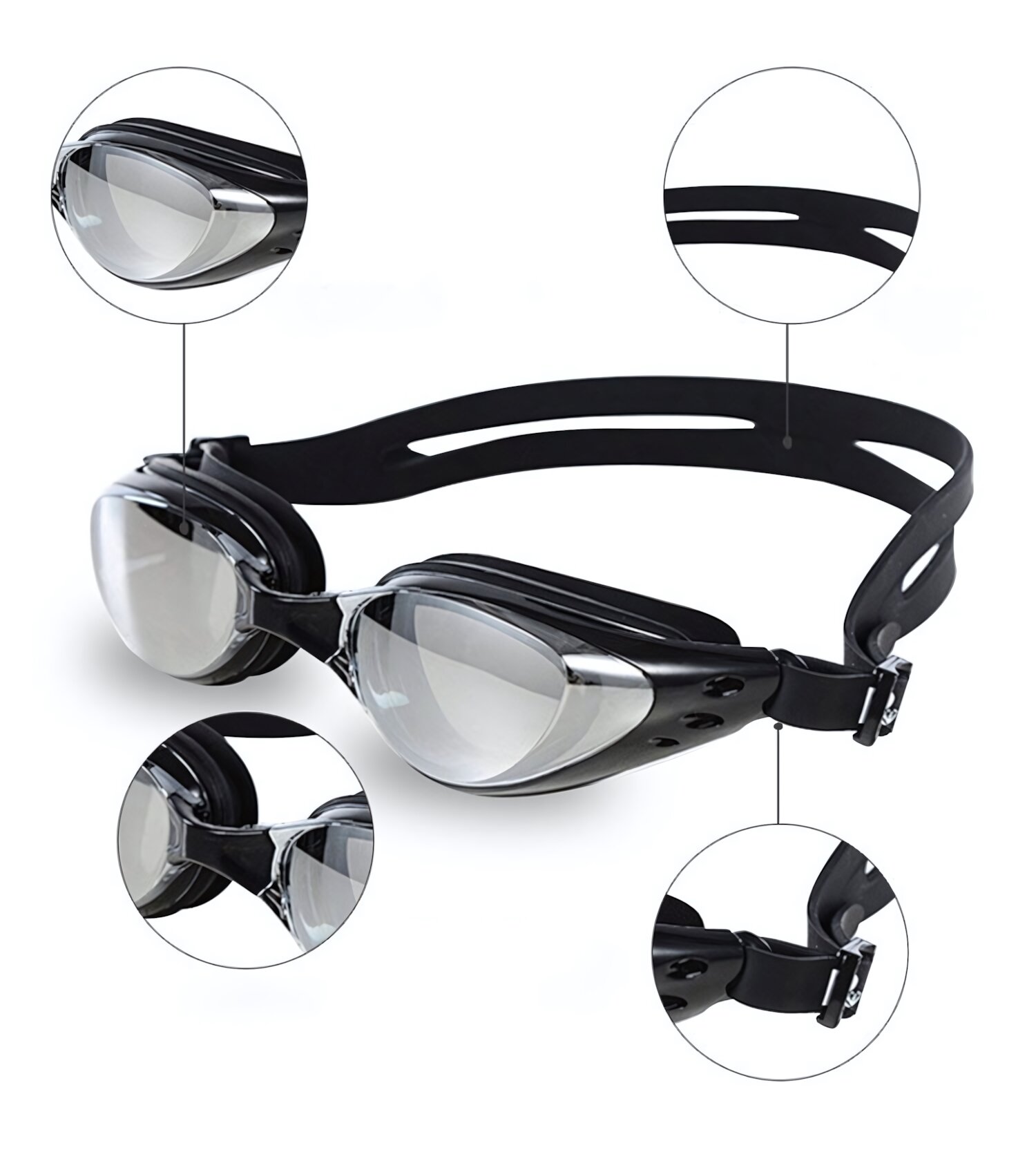 Очки для плавания Ruihe RH2000 с прозрачными линзами, защитой от запотевания, черные