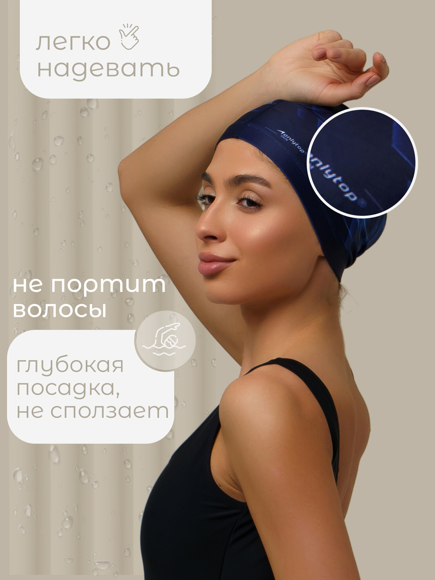Шапочка для плавания взрослая ONLYTOP Dynamics, тканевая, обхват 54-60 см интересное: