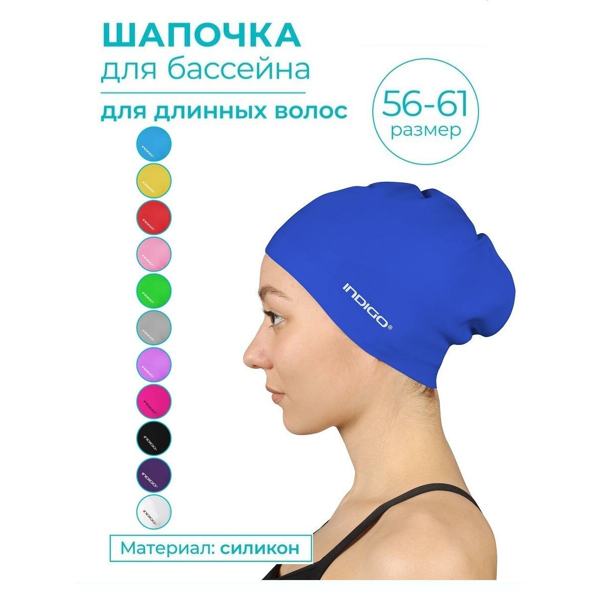 Шапочка для плавания силиконовая длинные волосы INDIGO 808 SC Голубой