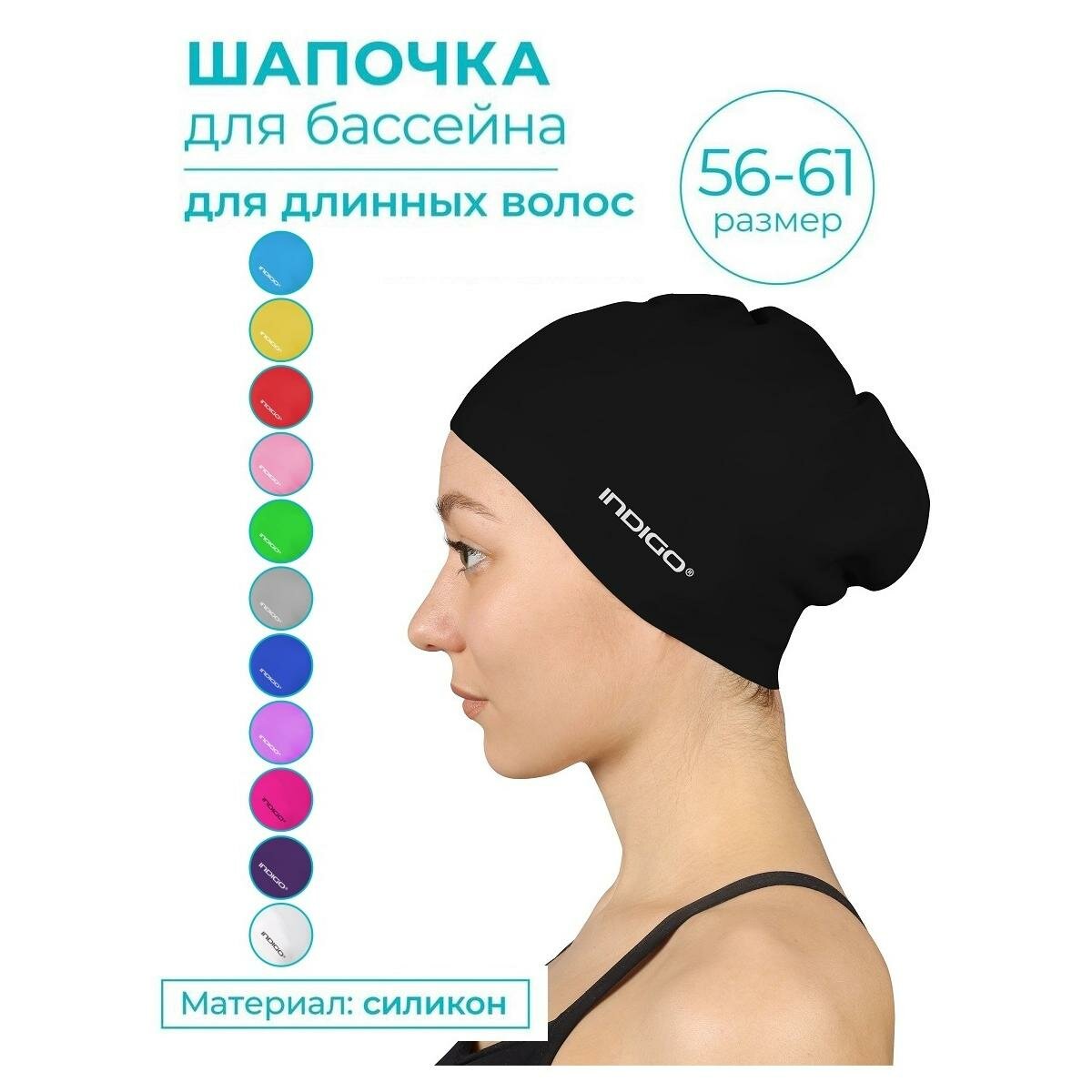 Купить Шапочка для плавания силиконовая длинные волосы INDIGO 802 SC Черный