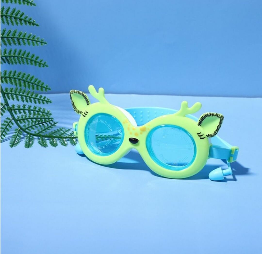 Купить Очки для плавания Оленёнок, детские, с берушами , зелёно-голубые