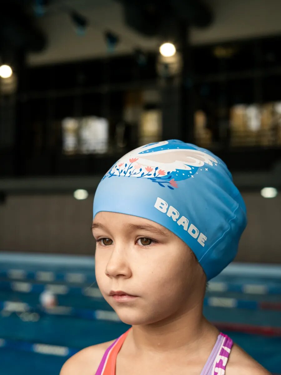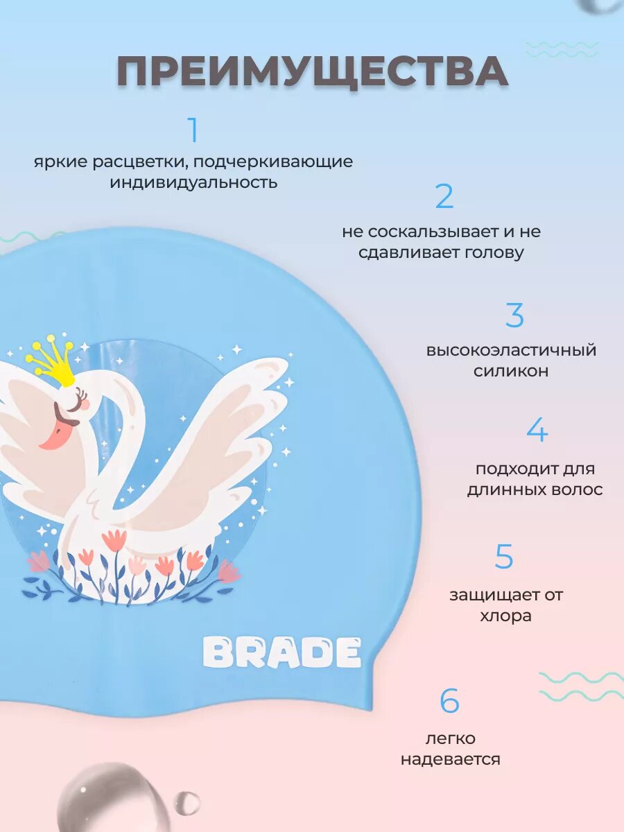 Шапочка для плавания детская в бассейн Brade ANIMALS с рисунком лебедь интересное: