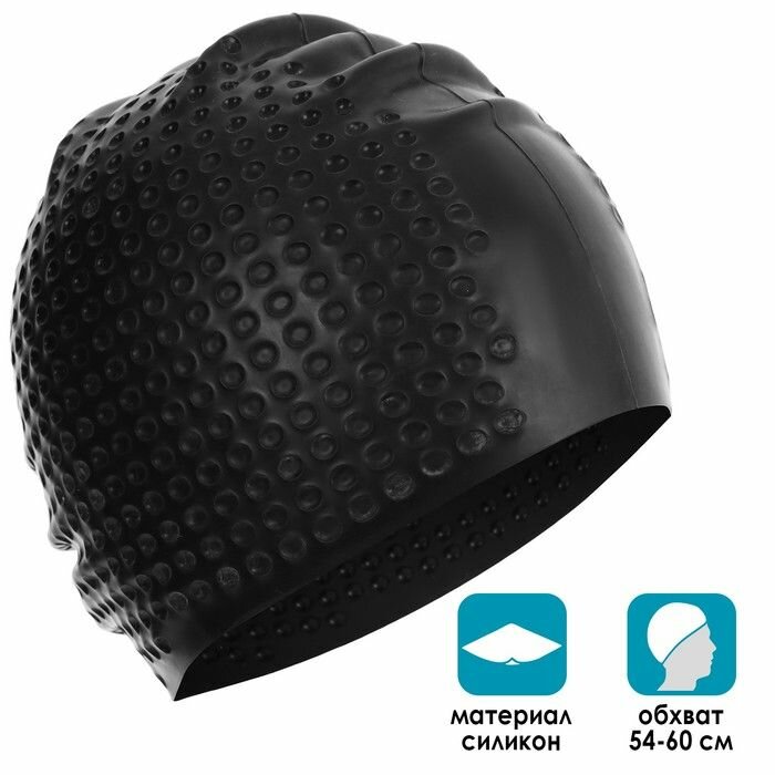 Купить Шапочка для плавания ONLYTOP взрослая, массажная, силиконовая, обхват 54-60 см, черная (SG07)
