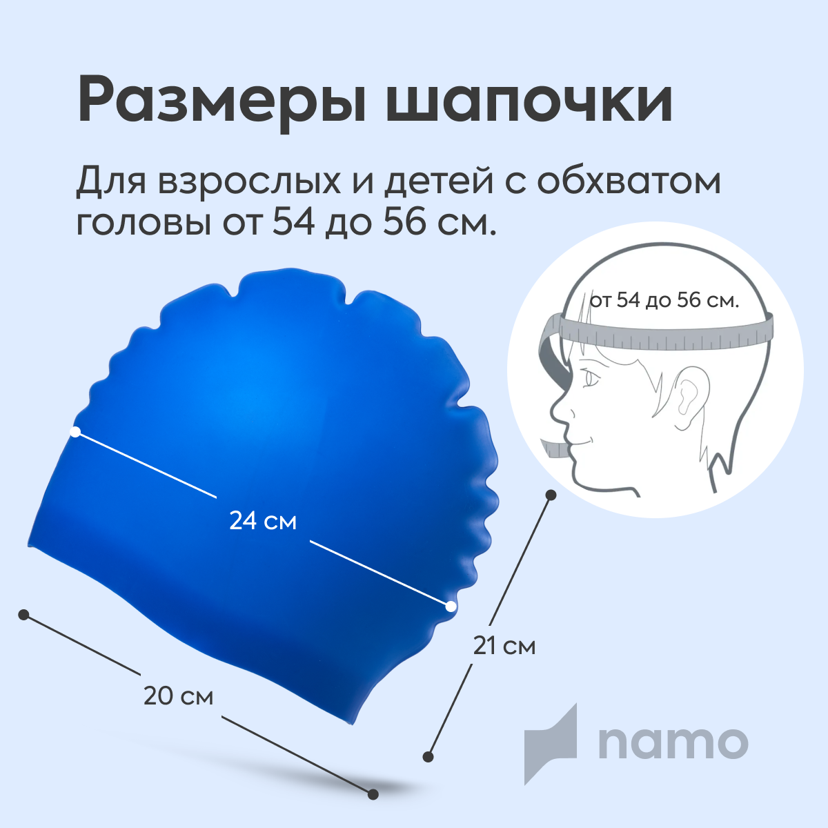 Шапочка NAMO для плавания, силикон, 52-60, непромокаемая, синяя интересное: