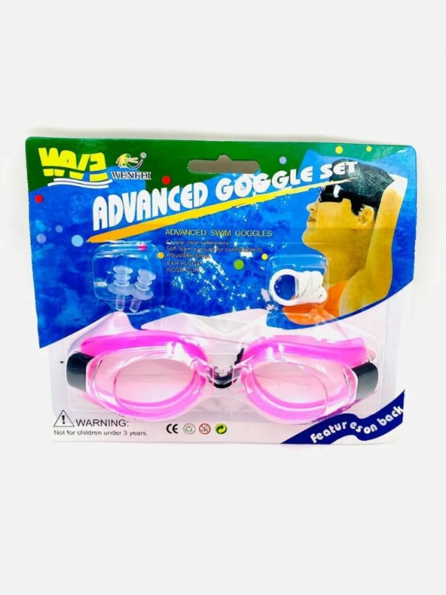 Купить Очки для плавания с берушами и зажимом для носа, розовые