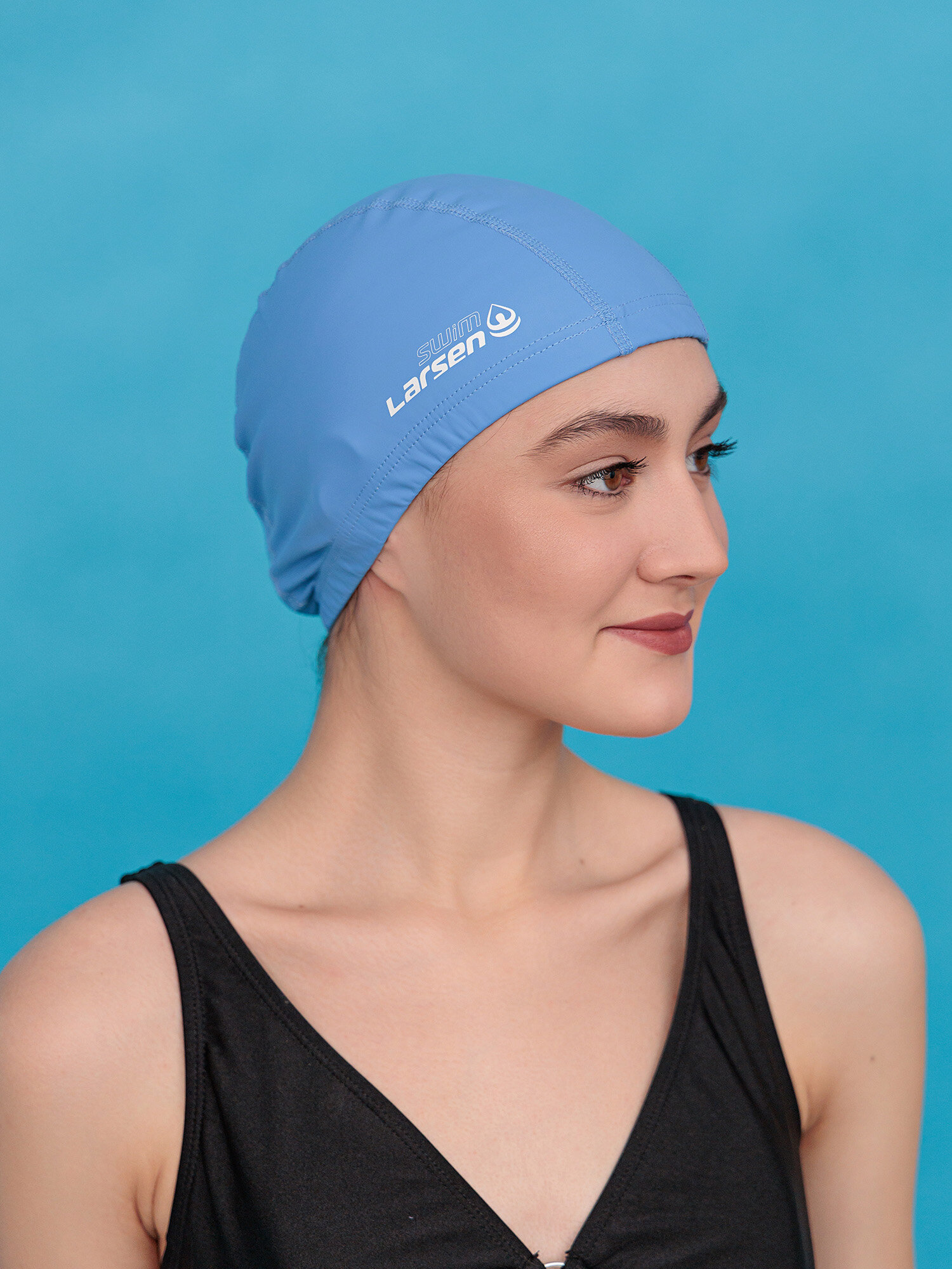 Шапочка плавательная для бассейна тканевая водонепроницаемая Larsen Swim PU100 голубая интересное: