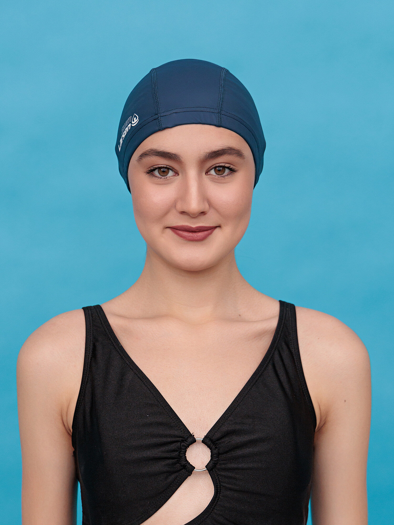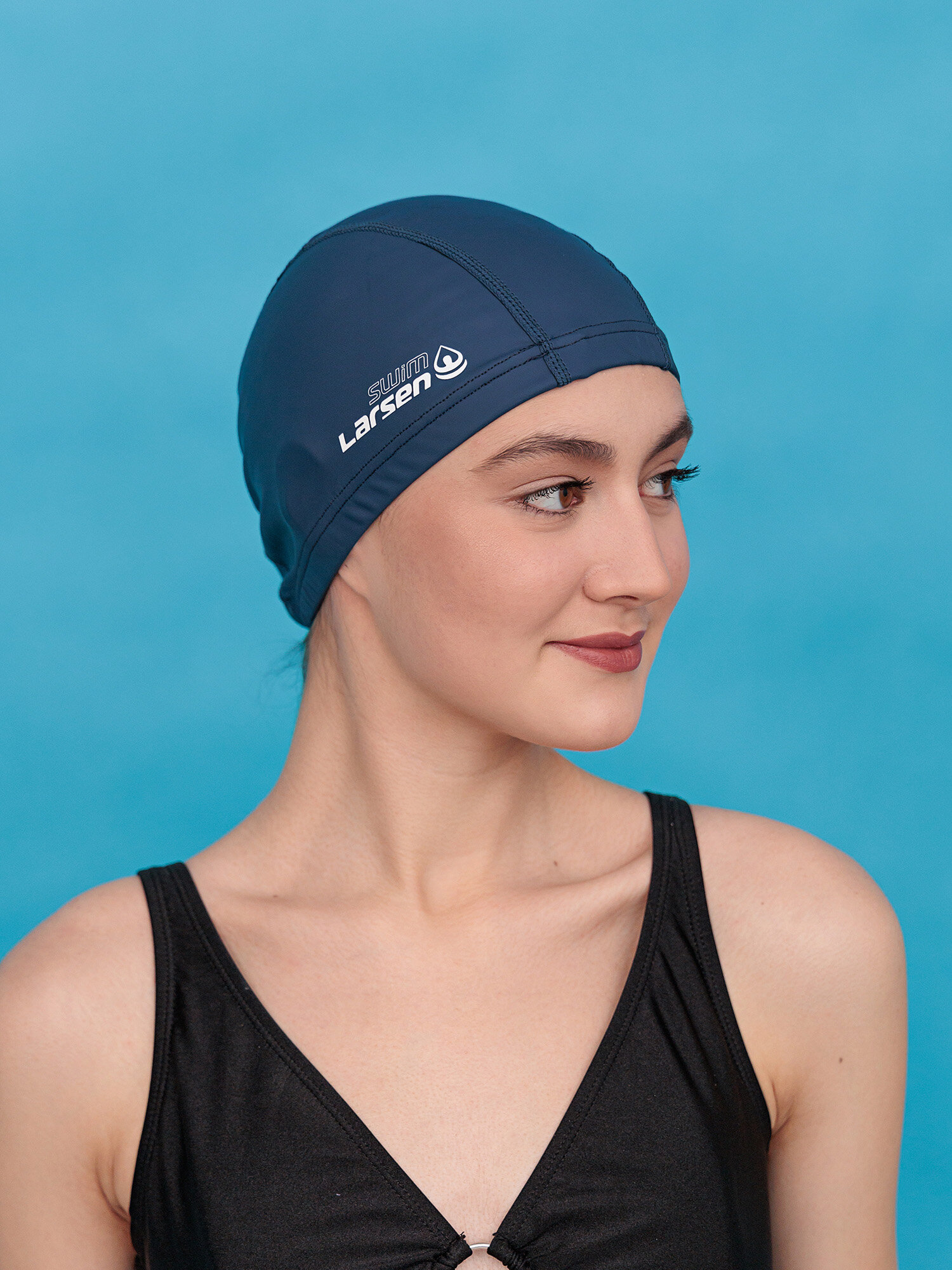 Шапочка плавательная для бассейна тканевая водонепроницаемая Larsen Swim PU100 синяя интересное: