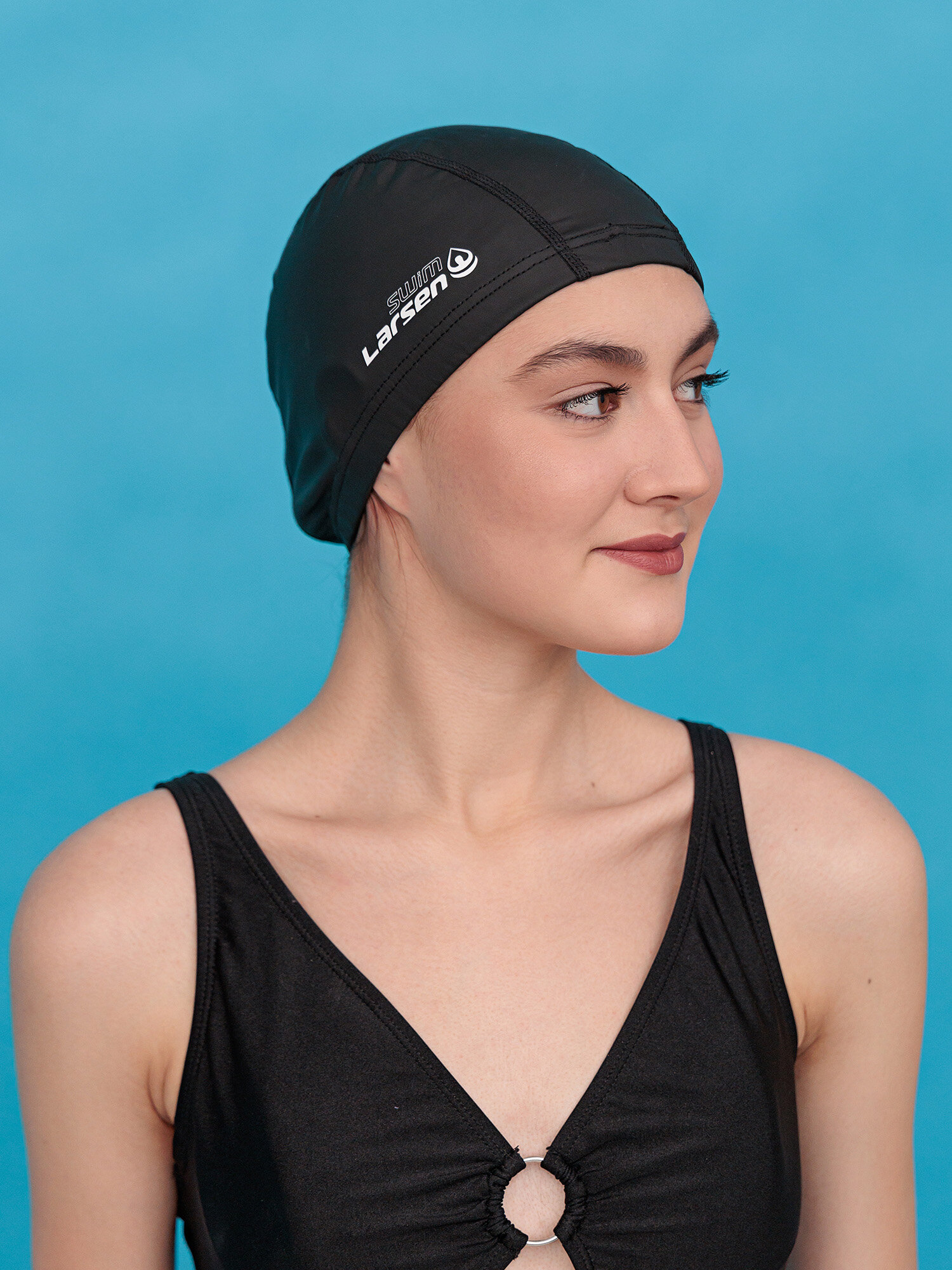 Шапочка плавательная для бассейна тканевая водонепроницаемая Larsen Swim PU100 черная интересное: