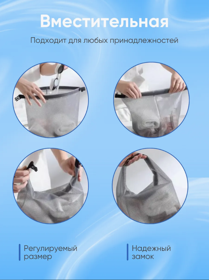 Сумка-мешок для мокрых вещей "Универсальная", водонепроницаемая, серая, 27,5x35x15см интересное: