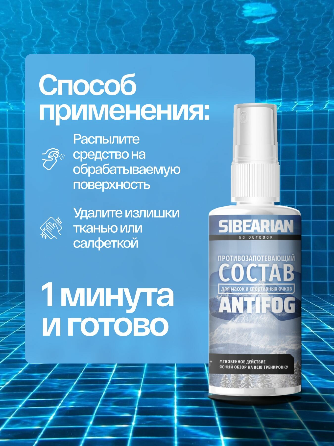 Антифог спрей для очков для плавания, оптики, линз, масок SIBEARIAN ANTI-BESCHLAG SET 30 мл набор с салфеткой
