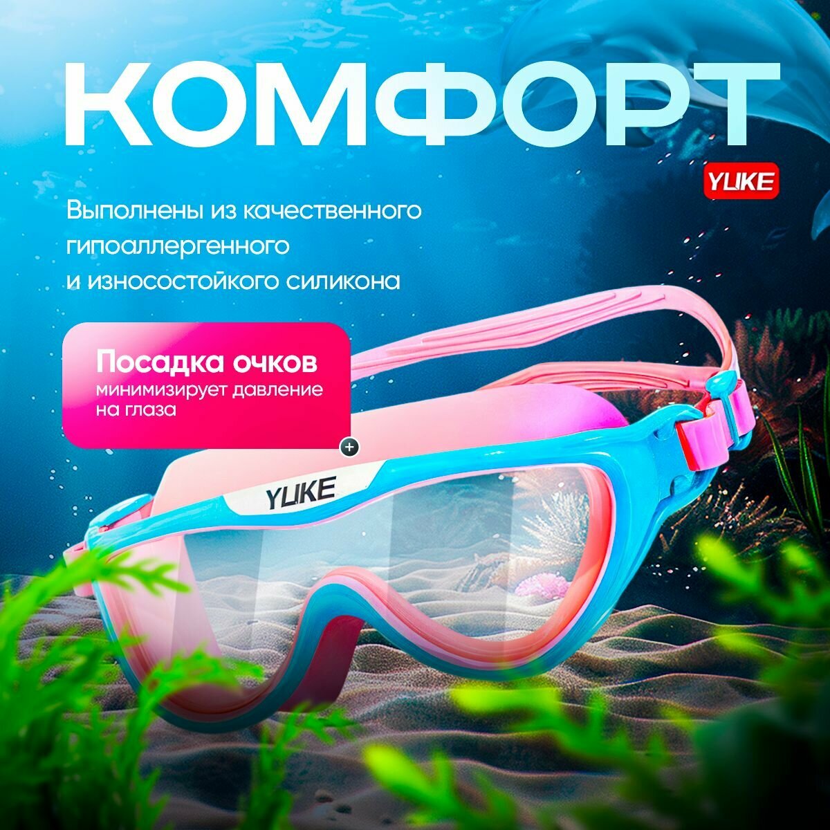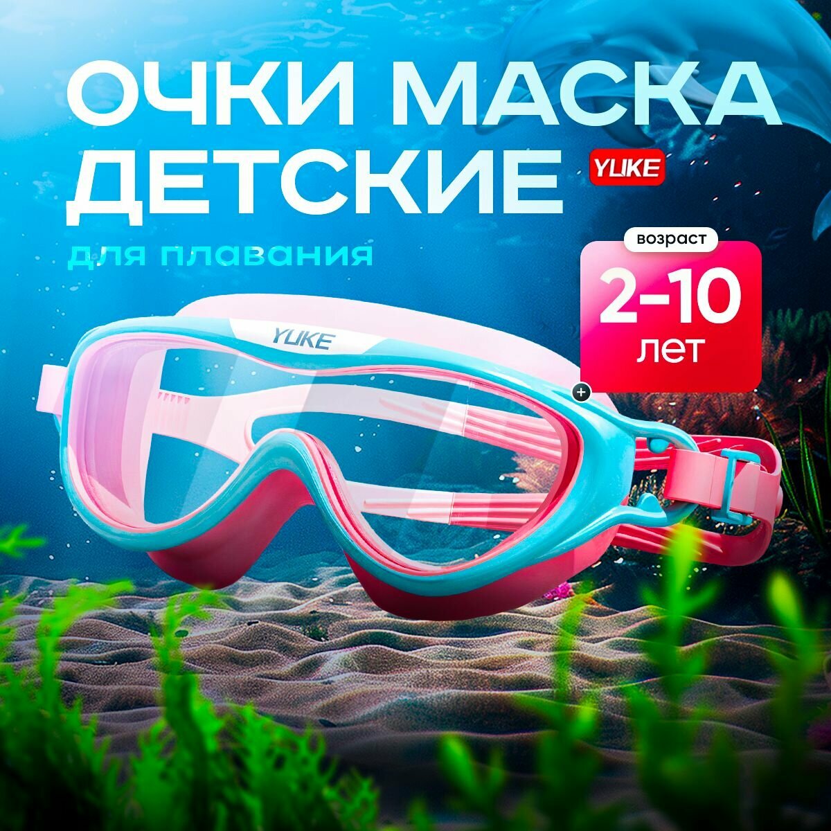Очки для плавания YUKE DBM1, розовые, поликарбонат/силикон, 2-10 лет интересное: