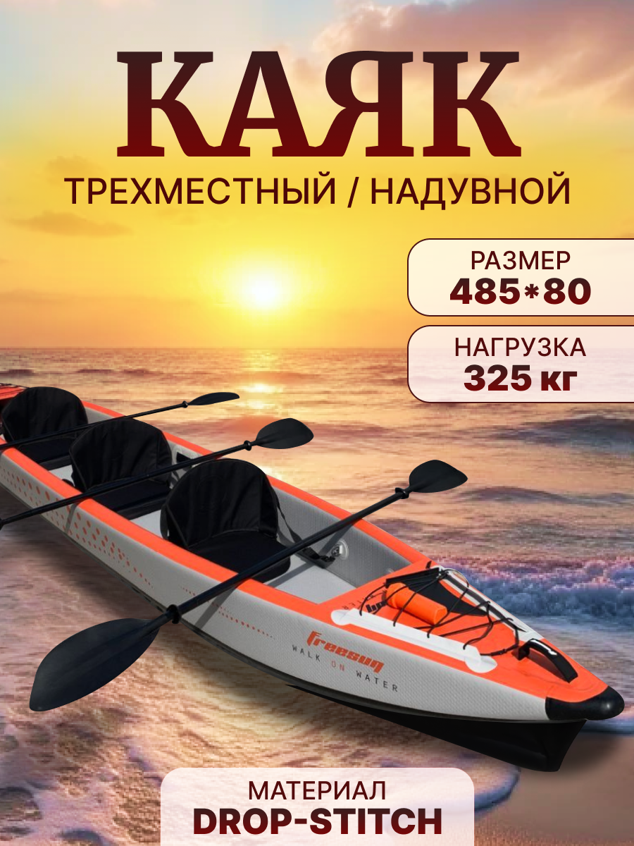 Каяк надувной трехместный FREESUN 485 см интересное: