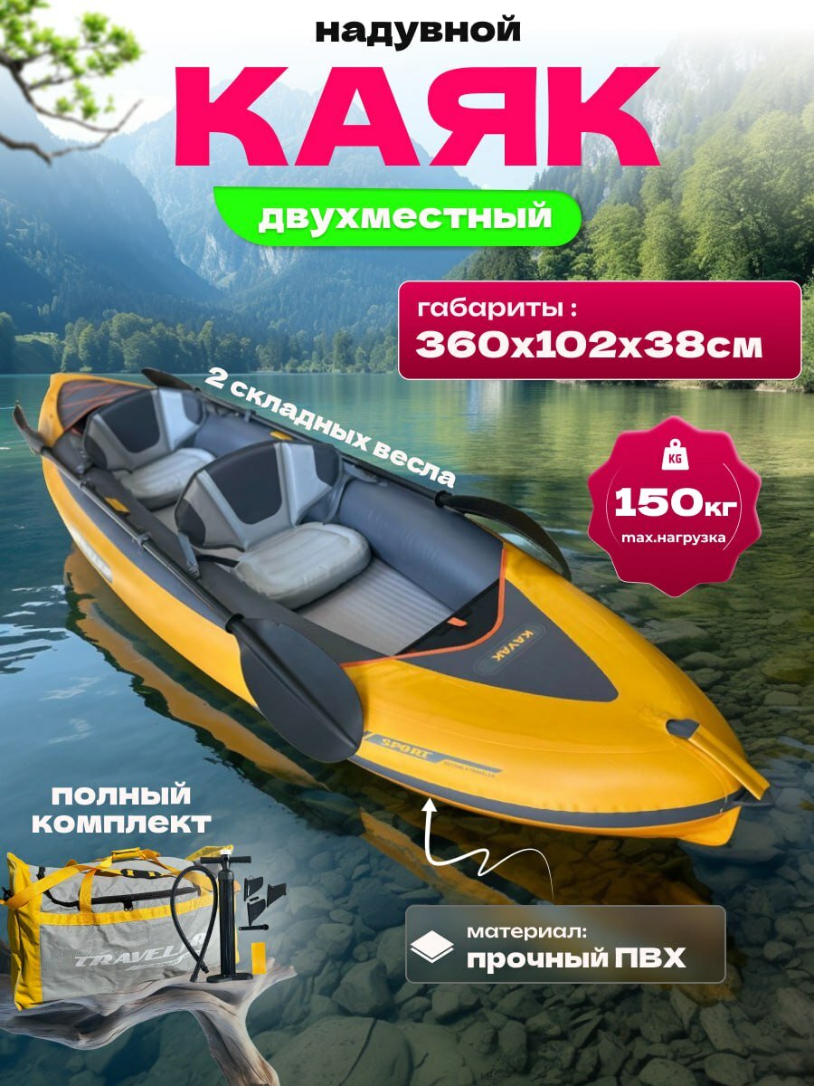 Каяк "Премиум" ПВХ, надувной, двухместный, желтый/серый, с насосом и веслами интересное: