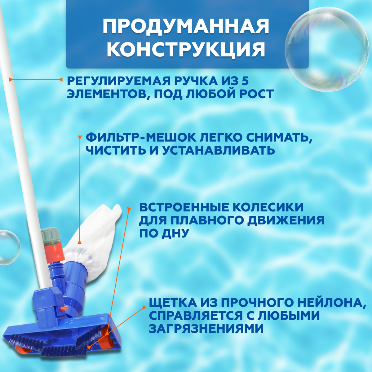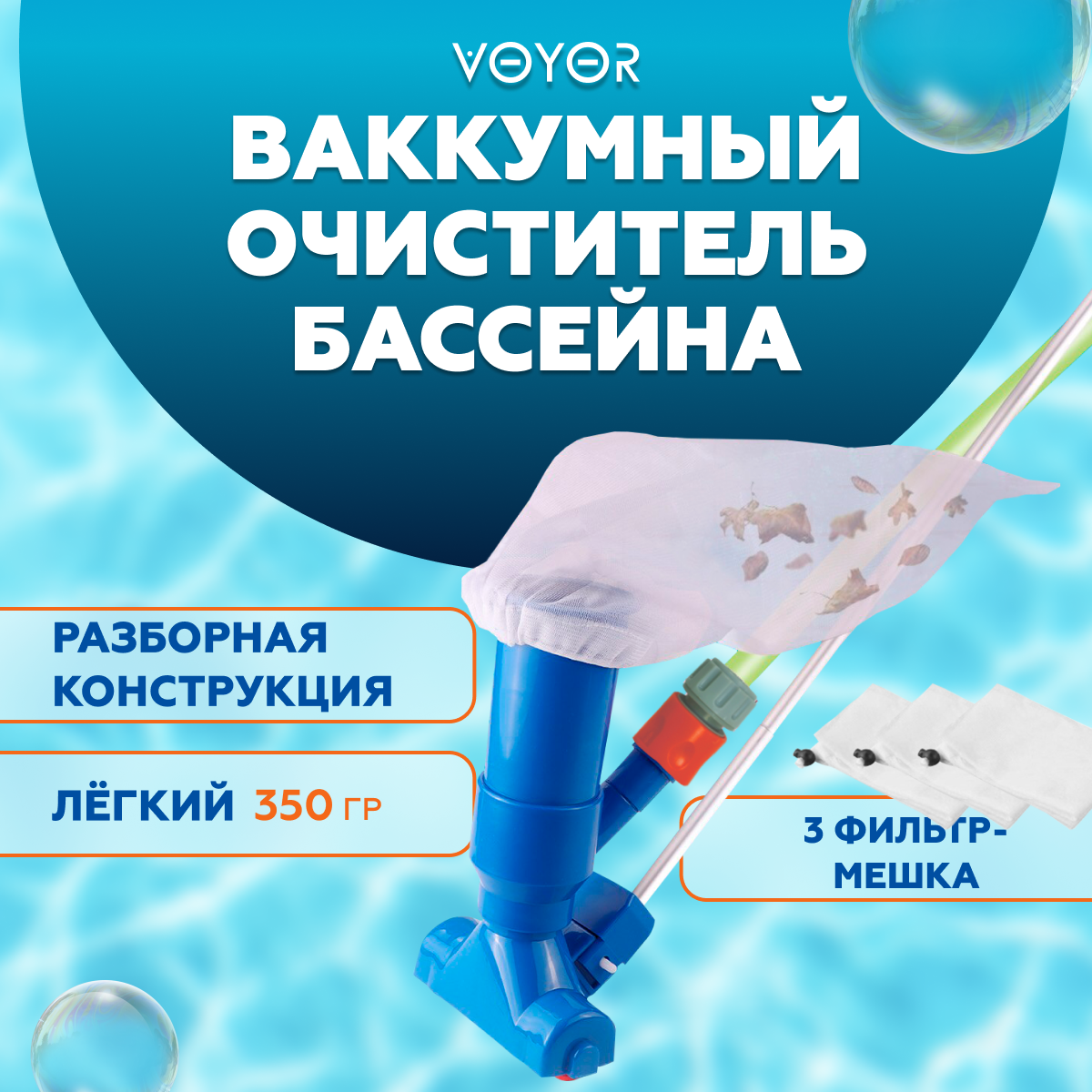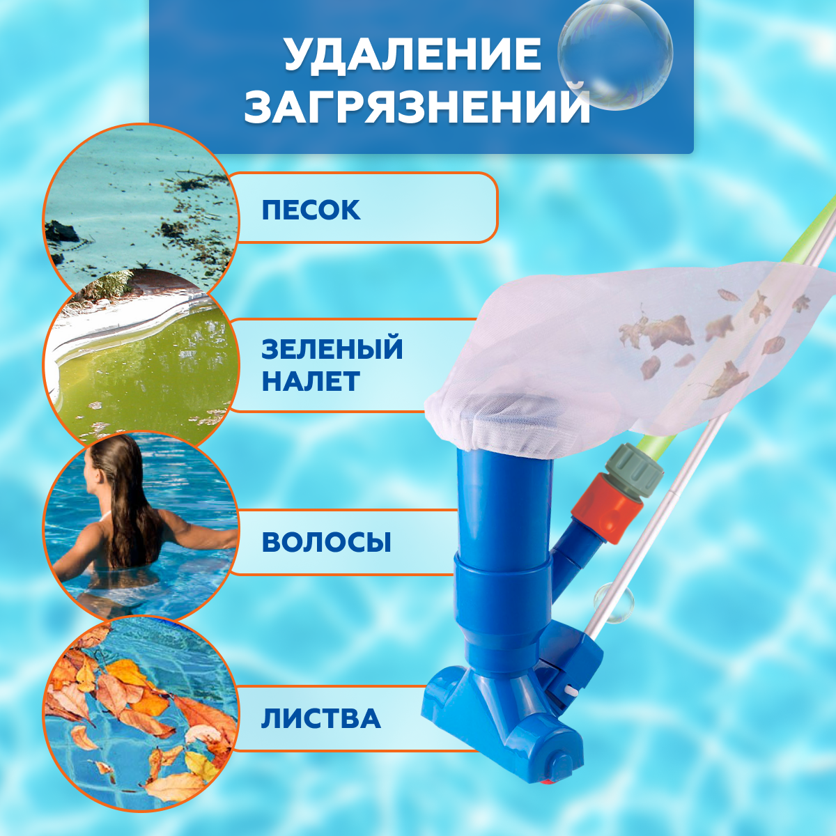 Набор насадок для чистки бассейнов, сачок, щетка, вакуумная насадка-пылесос с мешком интересное: