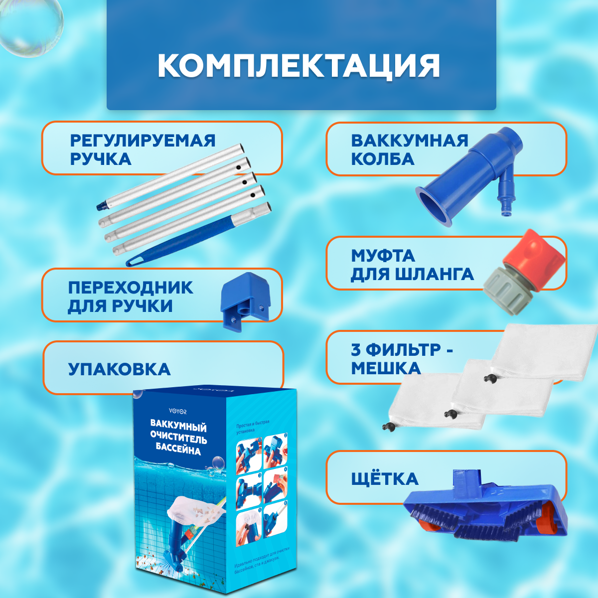 Ниже Вы можете прочитать отзывы на Набор насадок для чистки бассейнов, сачок, щетка, вакуумная насадка-пылесос с мешком, ознакомится с подробными характеристиками, посмотреть интересные обзоры и фотографии на Набор насадок для чистки бассейнов, сачок, щетка, вакуумная насадка-пылесос с мешком.