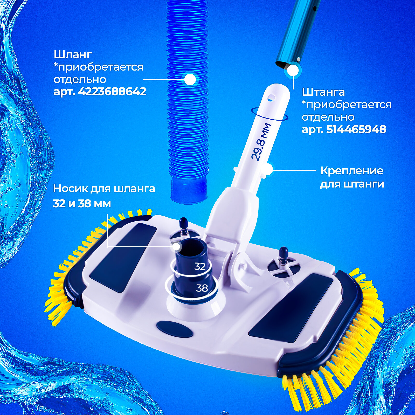 Щётка для пылесоса Vommy цветная Premium для чистки (уборки) бассейна, вакуумная насадка на штангу интересное: