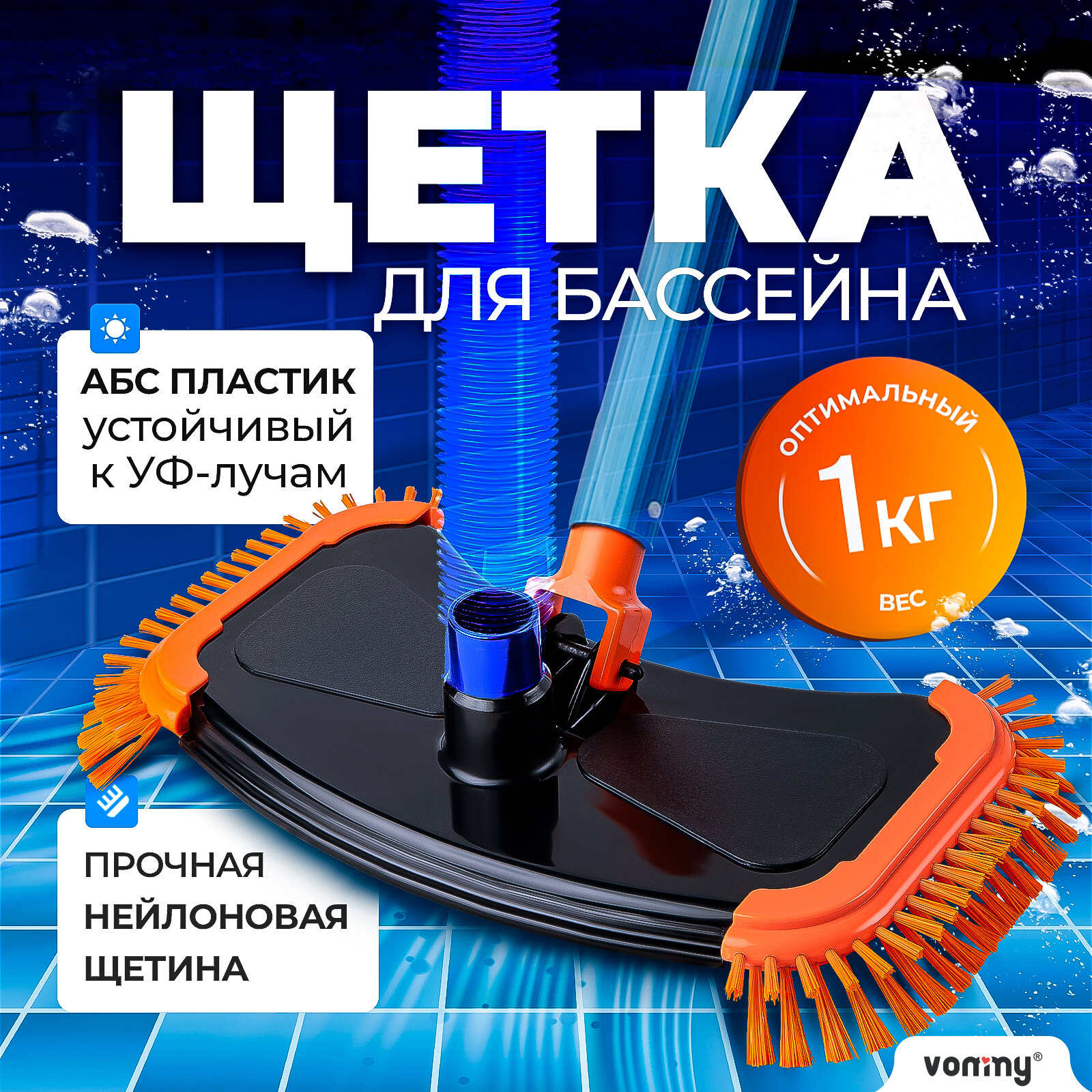 Щётка донная для пылесоса Vommy Classic черно-оранжевая для уборки (чистки) бассейна интересное: