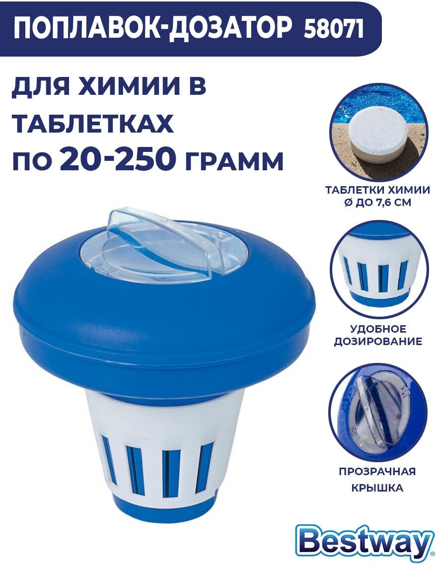 Дозатор плавающий для бассейнов Bestway, 16.5см для дезинфекции интересное: