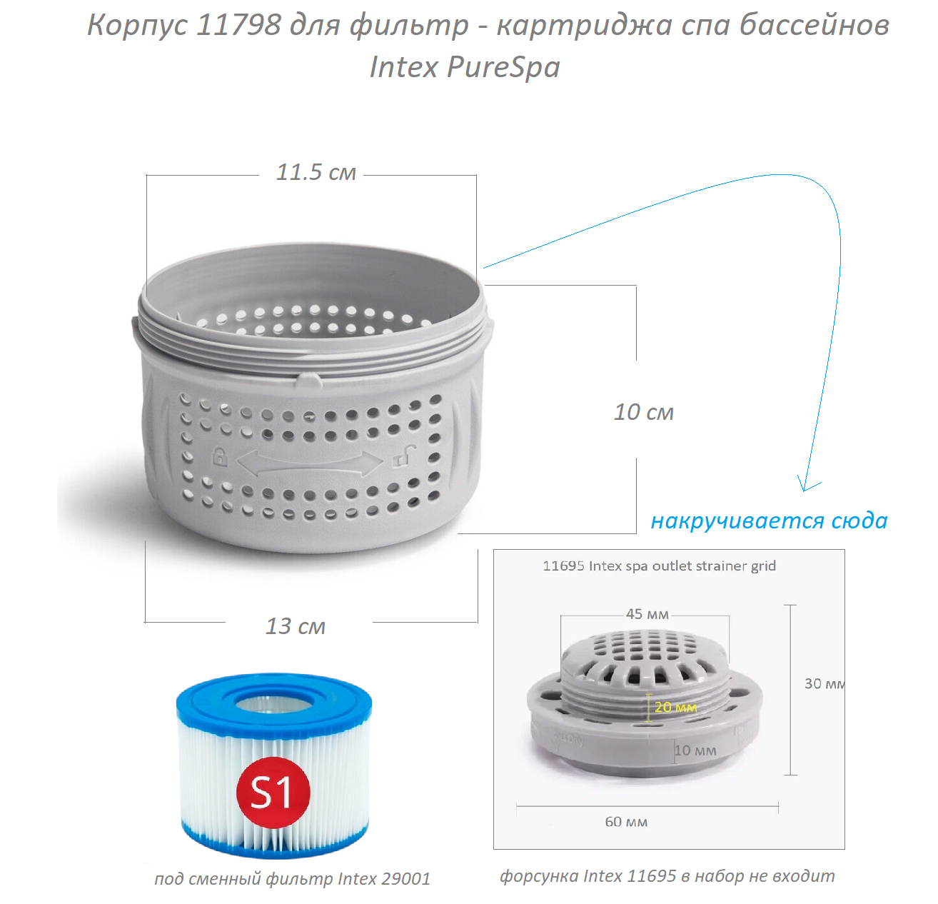 Корпус картриджа PureSpa (11798) для фильтр - насоса надувных спа бассейнов Intex интересное: