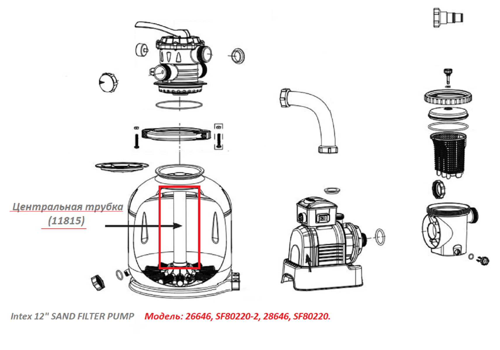 Центральная трубка (11815) песочного фильтра Intex 12" SAND FILTER PUMP (26646) интересное: