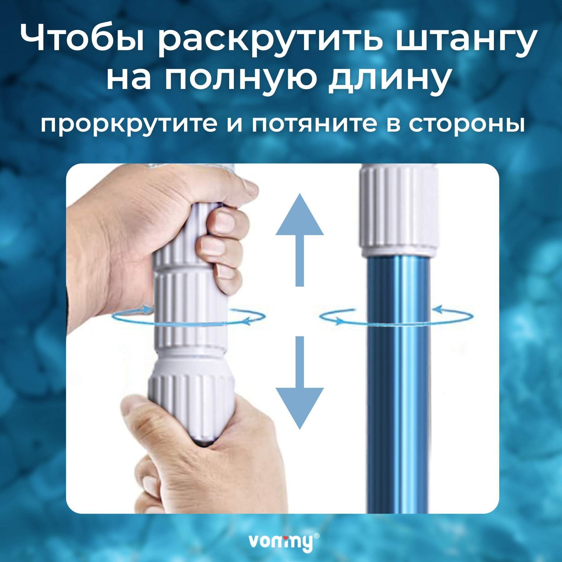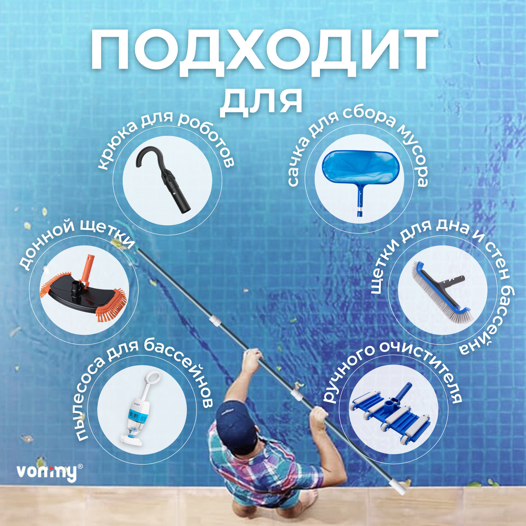 Купить Телескопическая штанга Vommy для щетки, шланга и сачка