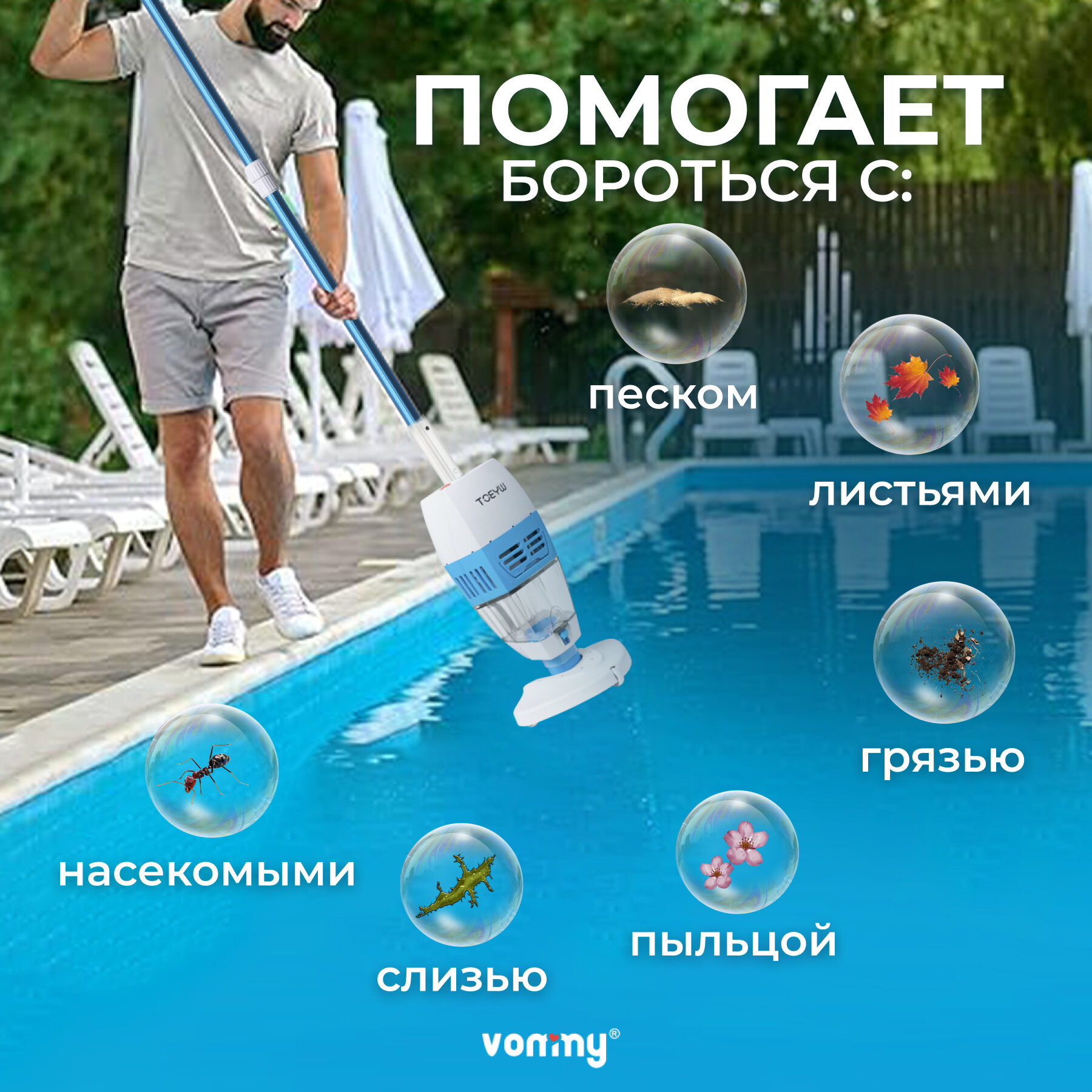 СохранитьТелескопическая штанга Vommy для щетки, шланга и сачка интересное: