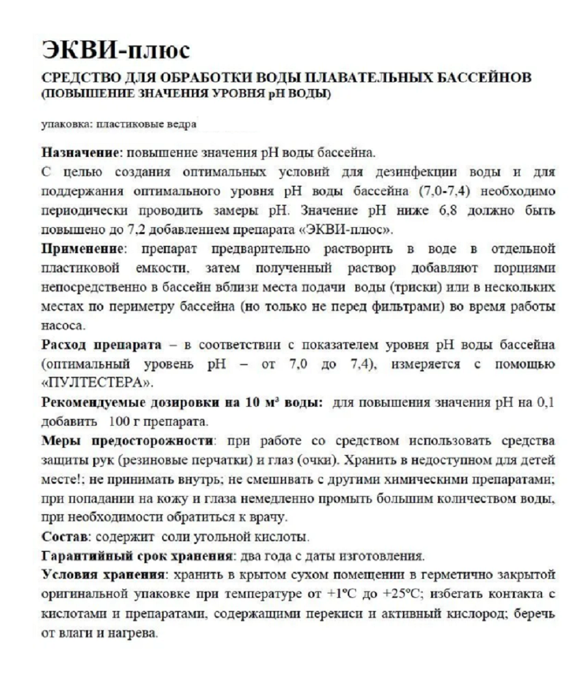 Экви плюс 4 кг, порошок для бассейна, повышение уровня pH воды интересное: