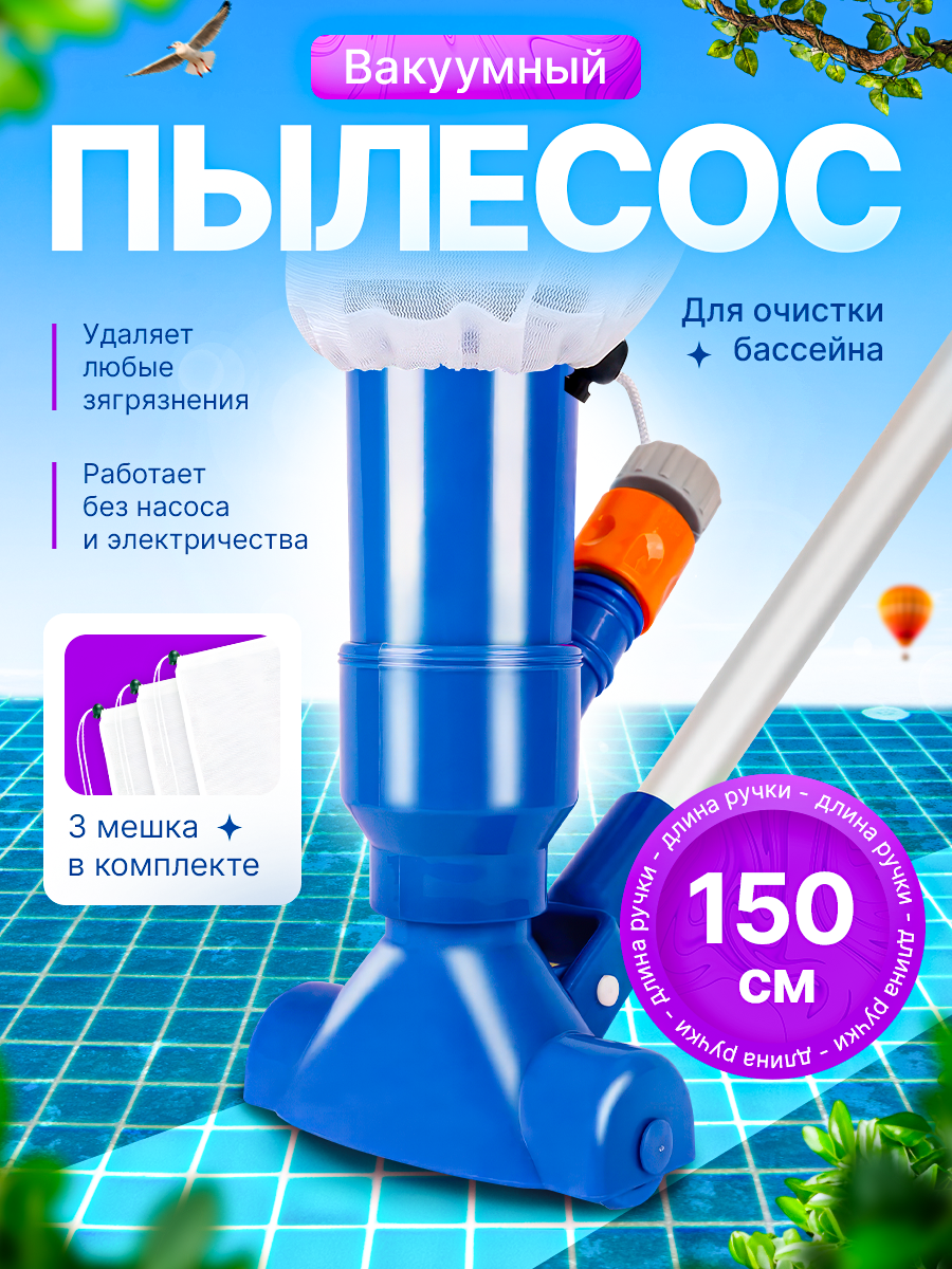 Пылесос вакуумный, щётка для бассейна, донный, с мешком-сеткой, синий, складная ручка 150см интересное: