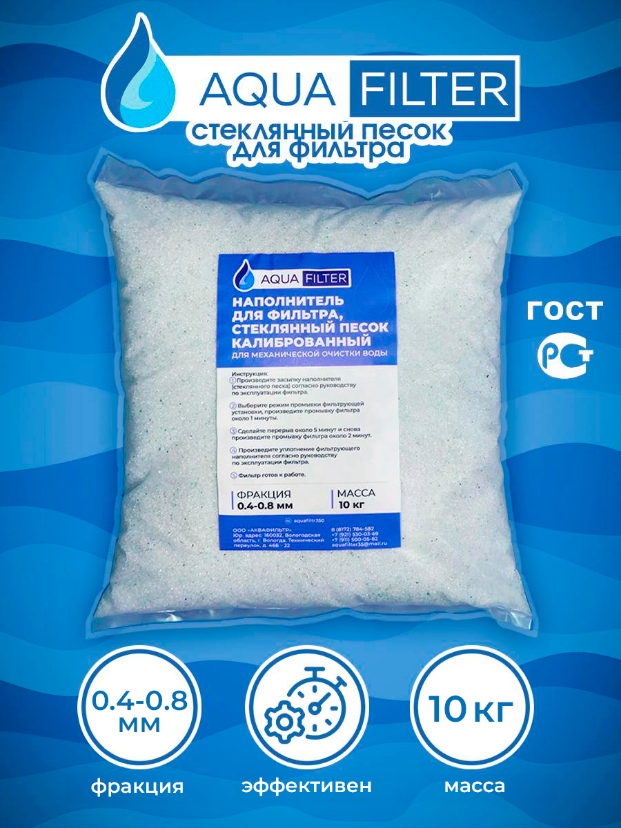 Стеклянный песок AquaFilter для фильтра бассейна, 0,4-0,8 мм,10 кг. интересное:
