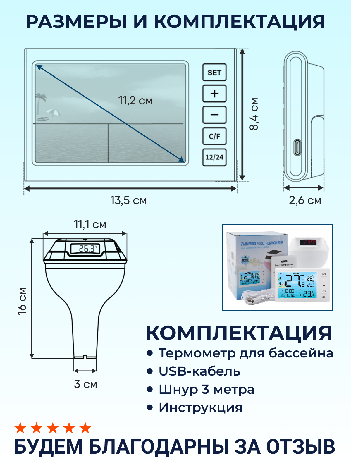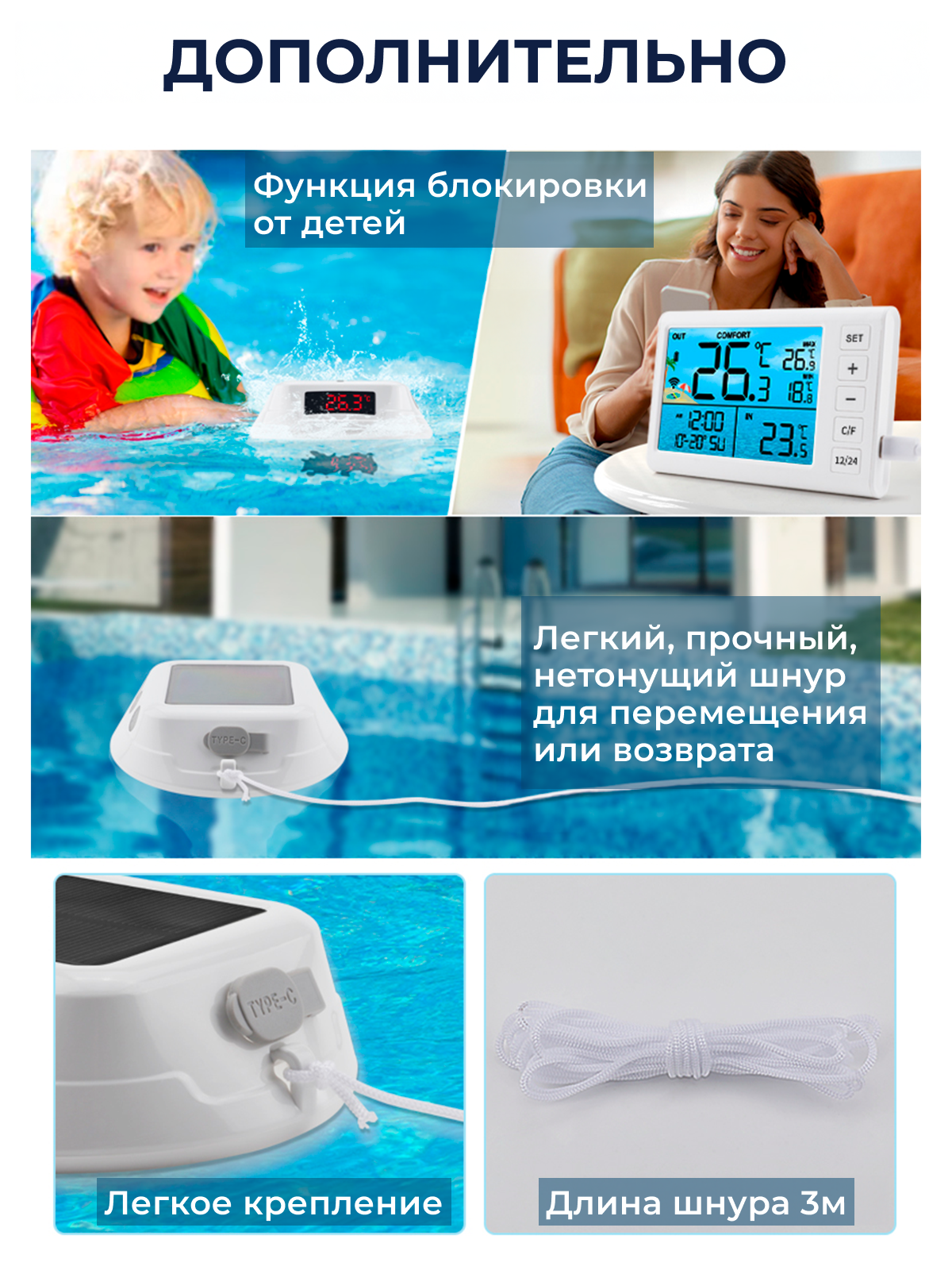 Термометр-поплавок SOVANCI, беспроводной, для всех типов бассейнов, с подсветкой интересное: