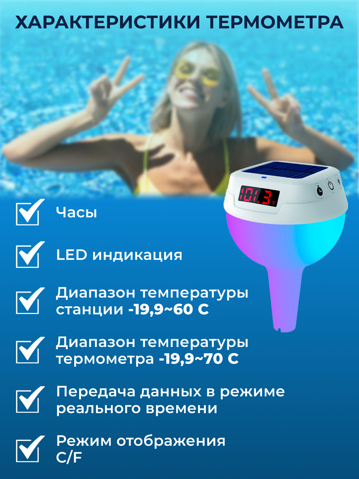Купить Термометр-поплавок SOVANCI, беспроводной, для всех типов бассейнов, с подсветкой