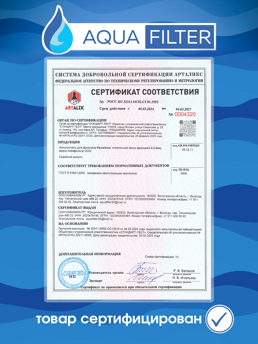 Стеклянный песок AquaFilter для фильтра бассейна, 1-2 мм, 10 кг. интересное: