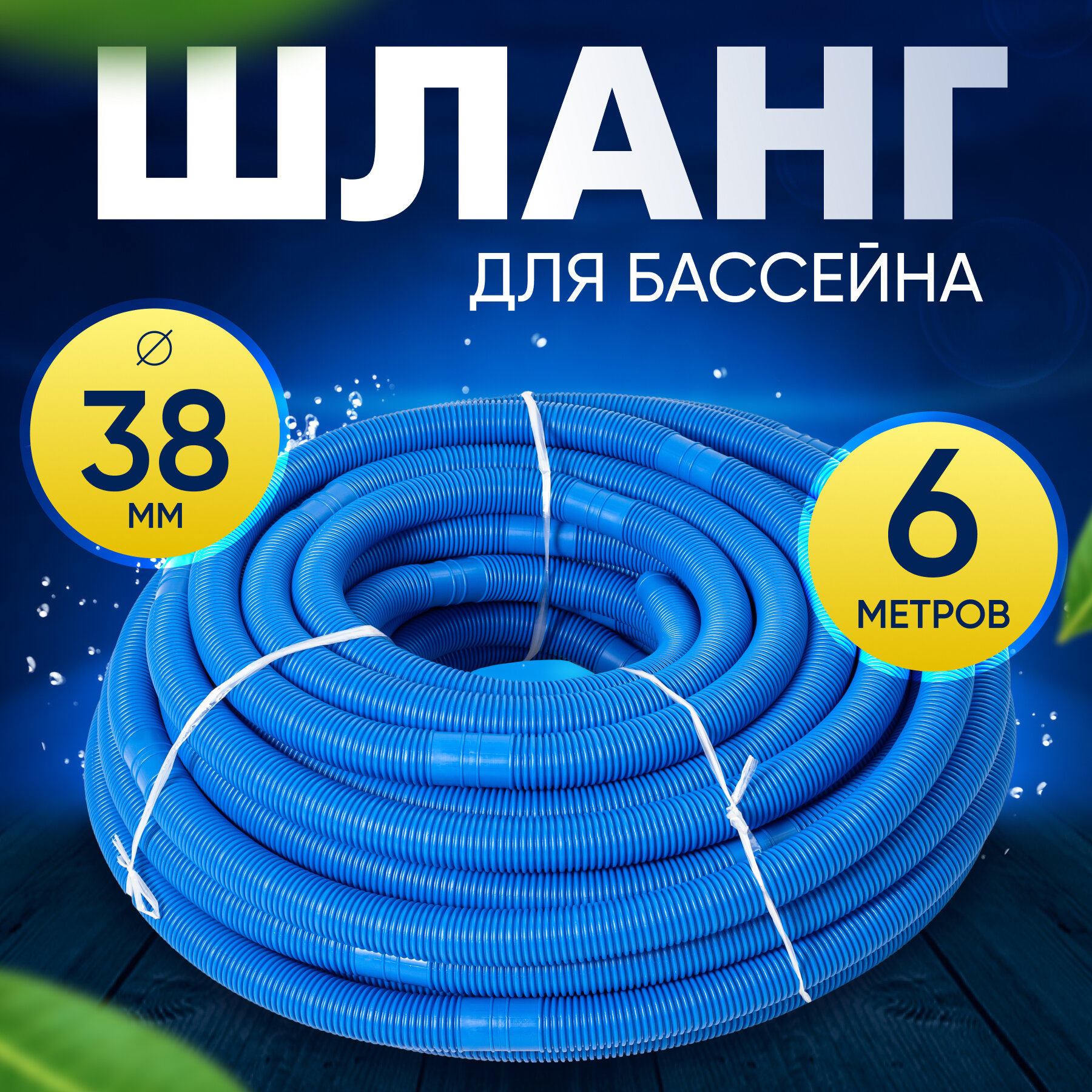 Шланг для бассейна D 38 мм, длина 9 м. Отрезной, гофрированный патрубок для подсоединения донного пылесоса, фильтра, нагревателя Vommy