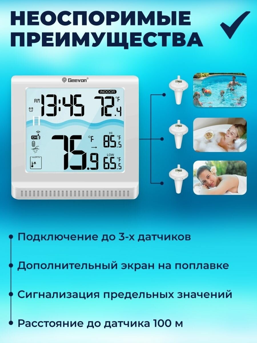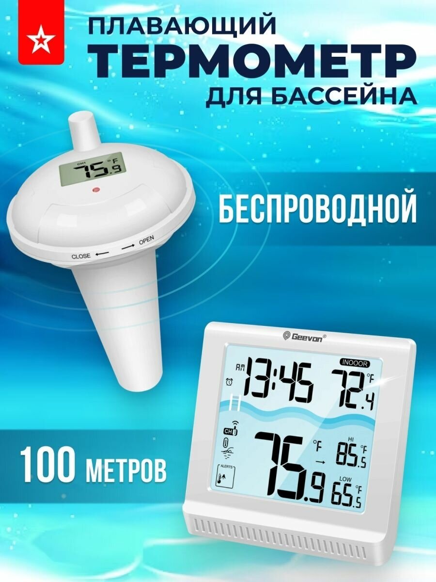 Термометр для бассейна GEEVON, пластик, беспроводной, белый, 12х12х12 см интересное: