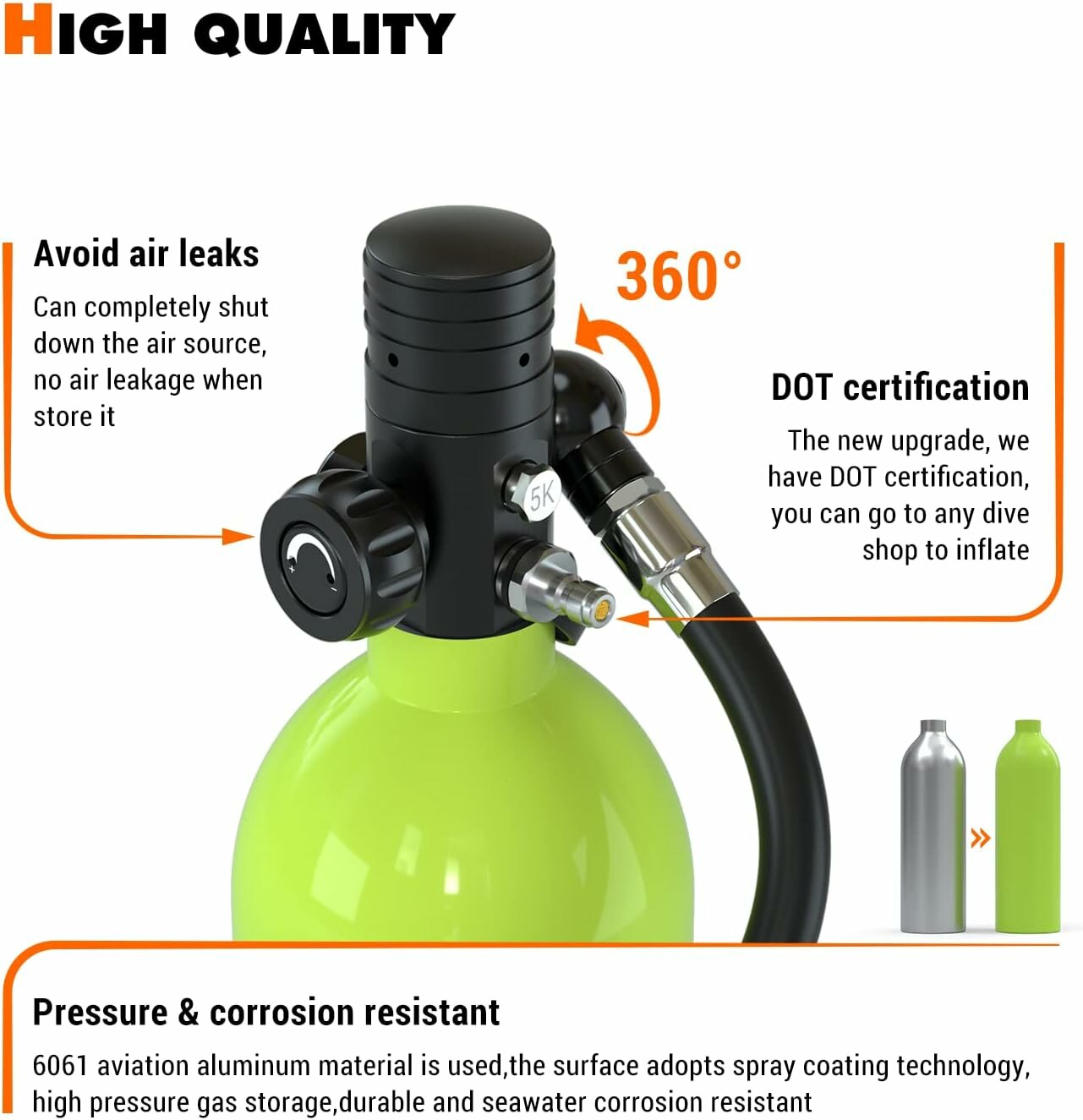 Баллон для дайвинга CHIKADIV емкостью 1 л, постоянное давление, можно использовать под водой около 15 минут. интересное: