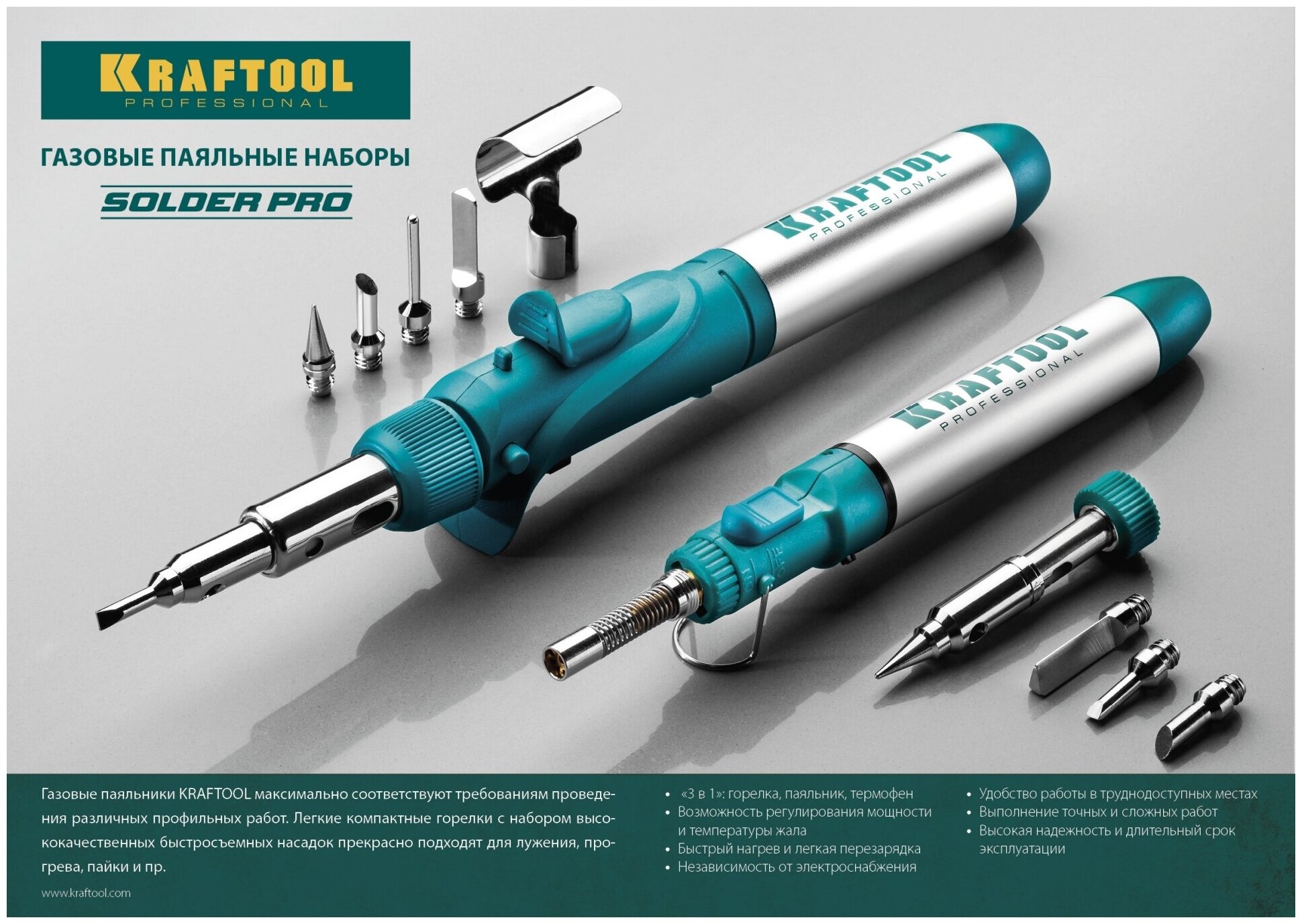 Купить KRAFTOOL SolderPro 120K набор 10-в-1, газовый паяльник, горелка, фен, 30-120 Вт, пьезоподжиг, 1300°С