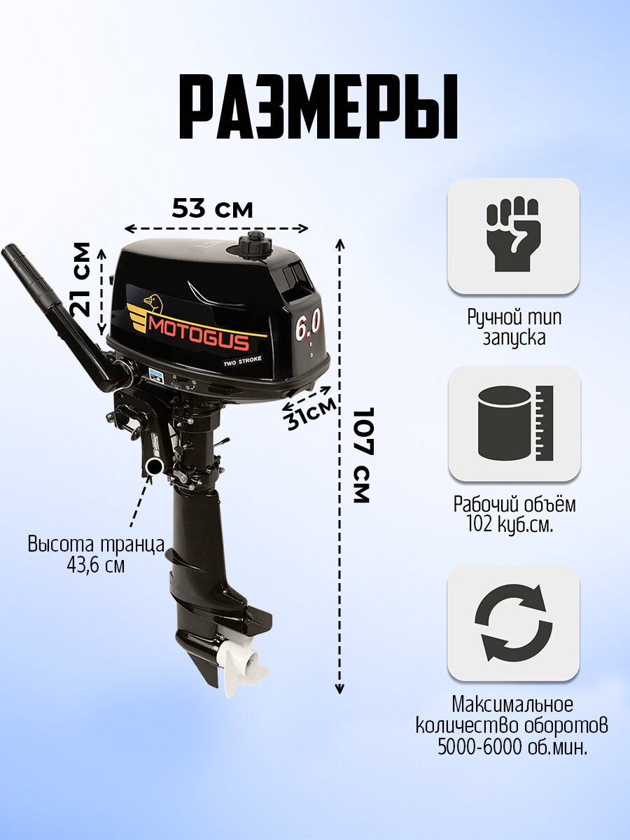 MOTOGUS лодочный мотор M 6S, 102 см3, 6 л. с. интересное: