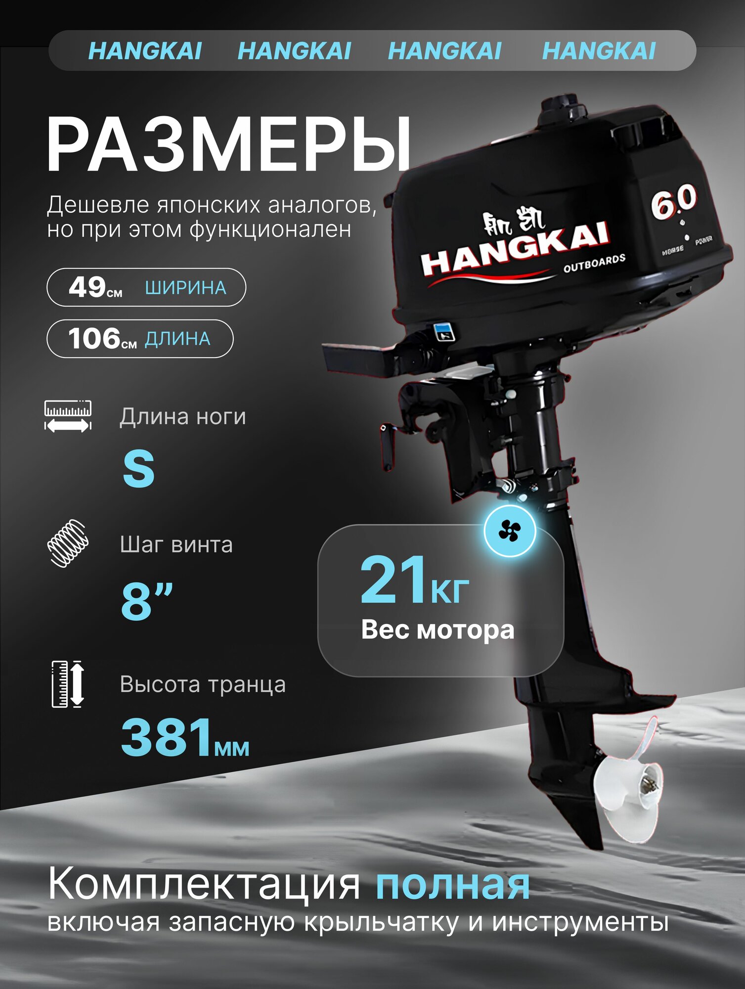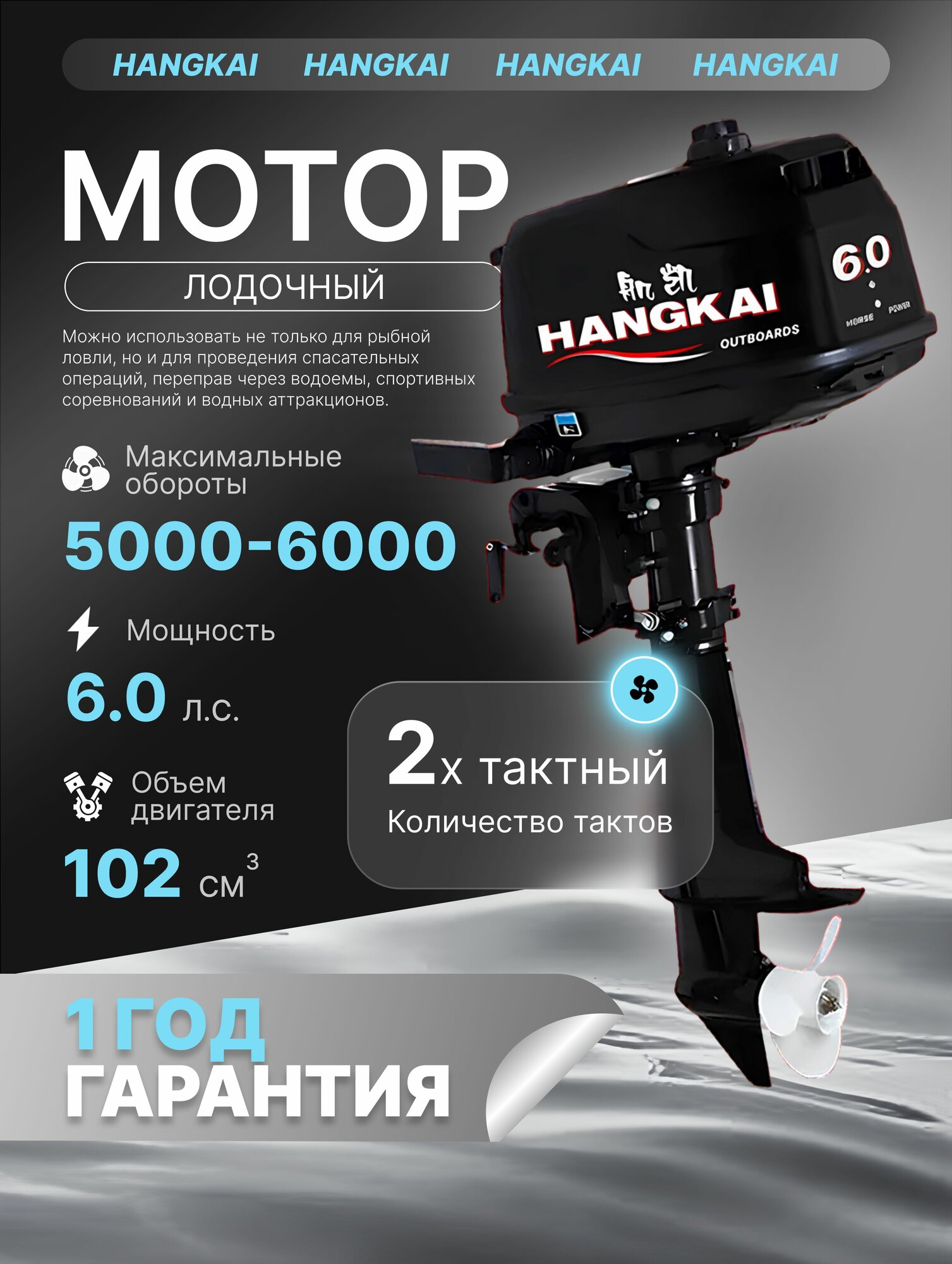 Подвесной маленький лодочный мотор Hangkai 2х тактный двигатель бензинового типа с мощностью 6 л. с. интересное: